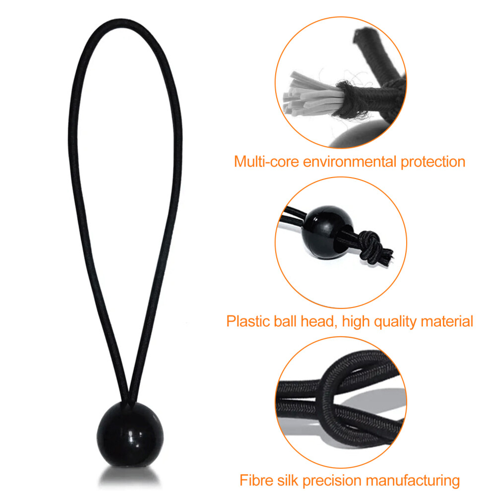 10 X BALL BUNGEE LOOP SHOCK CORDS BLACK ELASTIC TARPAULIN CAMPING CANOPY 25CM