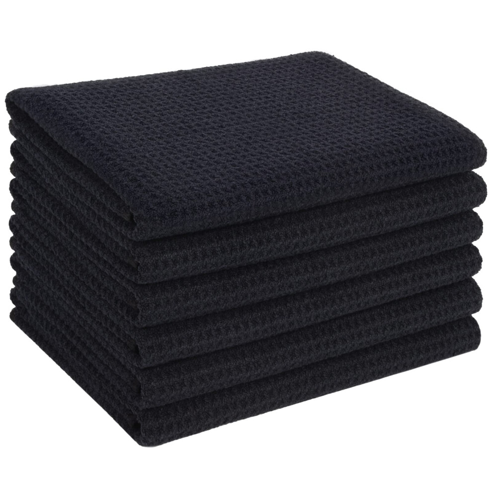 VIVOTE 6 Pack Microfibre Drying Towels Waffle Weave Cleaning Towels Super Absorbent Tea Towels 40 cm X 56 cm Black 380gsm