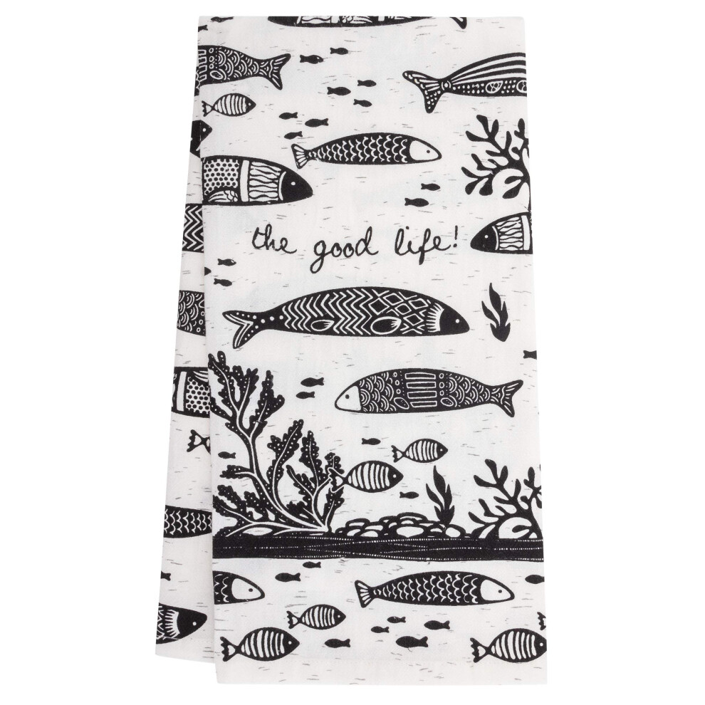 Karma Gifts Black and White Boho Tea Towels 28"""" L x 20"""" W Fish