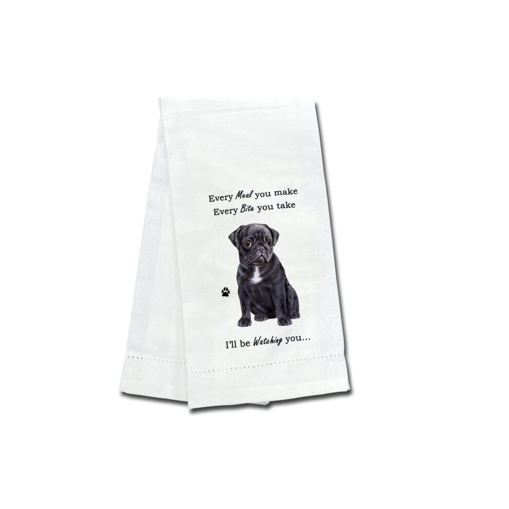 E&S Imports Black Pug Kitchen Towel - Soft Highly Absorbent - Black Pug Gifts - Dish Towels for Washing Dishes - Tea Towels - Reusable - Quick Drying