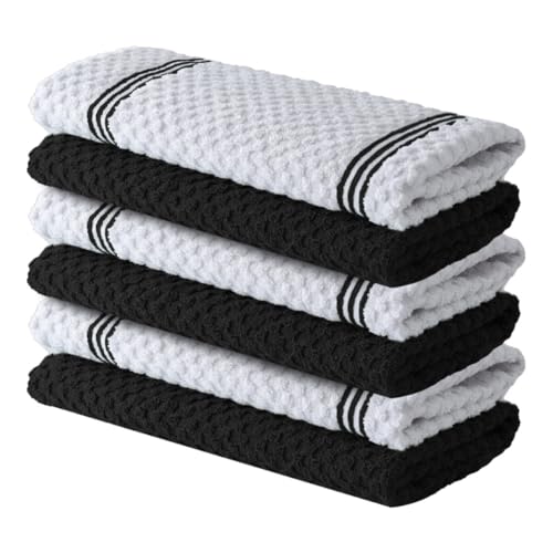 Utopia Towels Kitchen Towels (12 Pack, 38 x 64 Centimeters) Pure Cotton Machine Washable 6 Black and 6 White Dobby Kitchen Dish Cloths, Tea Towels,...