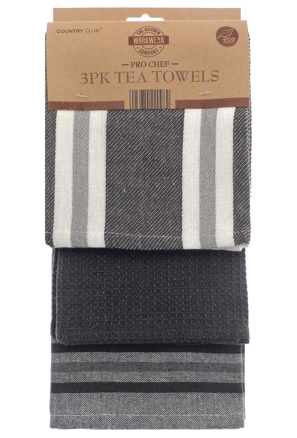3pk Pro Chef Tea Towel Striped Kitchen Towels Dry Cleaning Dish Cloth Black Grey