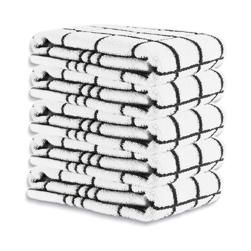 Stripe Designed Tea Towels for Kitchen - 100% Cotton 5 Pack, Grey & Black