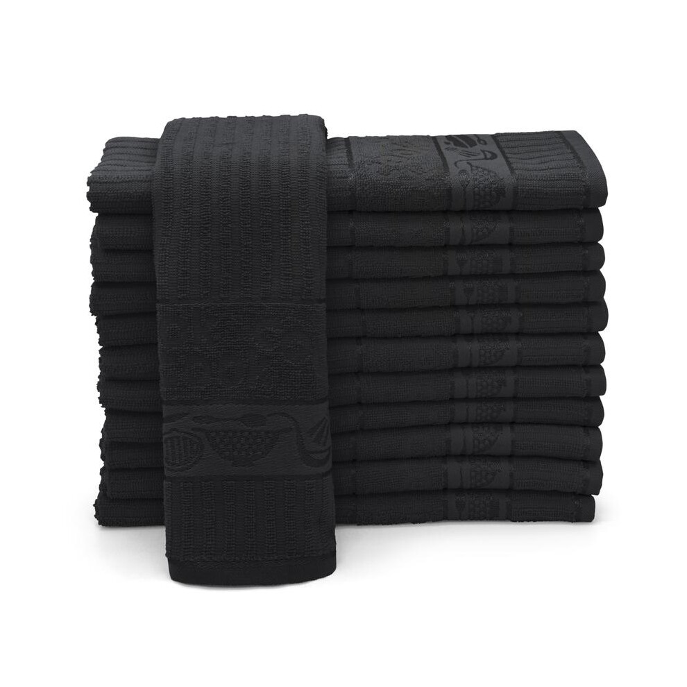 Utopia Towels -12 Kitchen Towels Set - 38 x 64 cm - 100% Ring Spun Cotton Super Soft and Absorbent Dish Towels, Tea and Bar Towels (Black)
