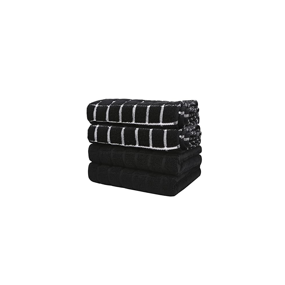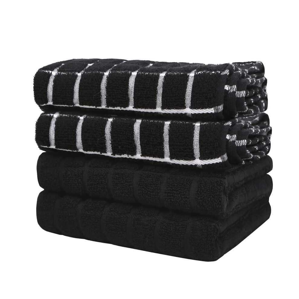 Kitchen Towels Cotton Black - Tea Absorbent - Thick Dish 4 pack,