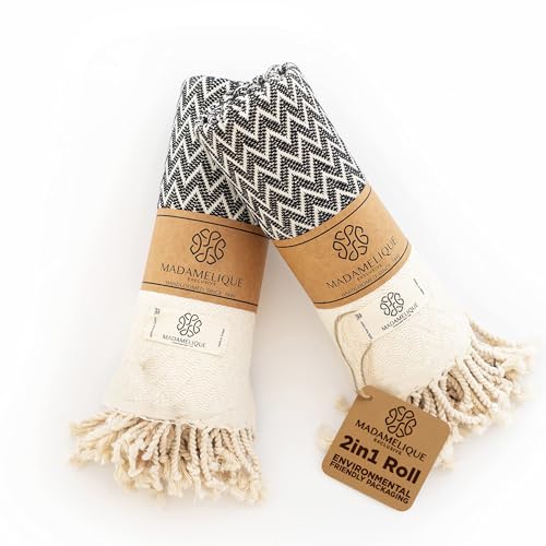 Madamelique Exclusive Hand Towels Set of 2-18 x 40 Inches - Decorative Bathroom Peshtemal Towel for Hand, Face, Hair, Yoga, Tea, Dishcloth, Kitchen and Bath - 100% Pure Cotton (Black)