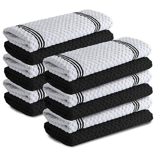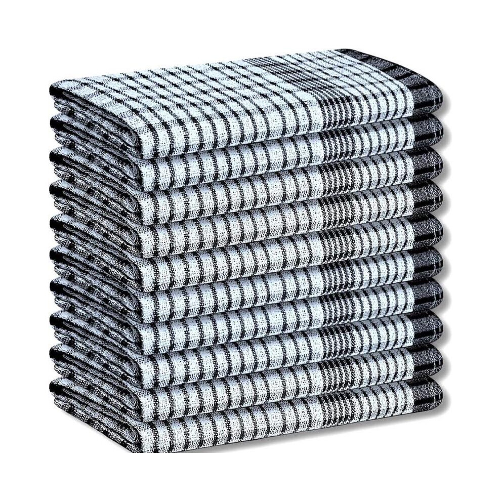 (Black) Wonderdry Tea Towels Kitchen Pack of 10, Cotton Absorbent Long Lasting Catering Bar Towels Washable Reusable Water Absorbent Kitchen
