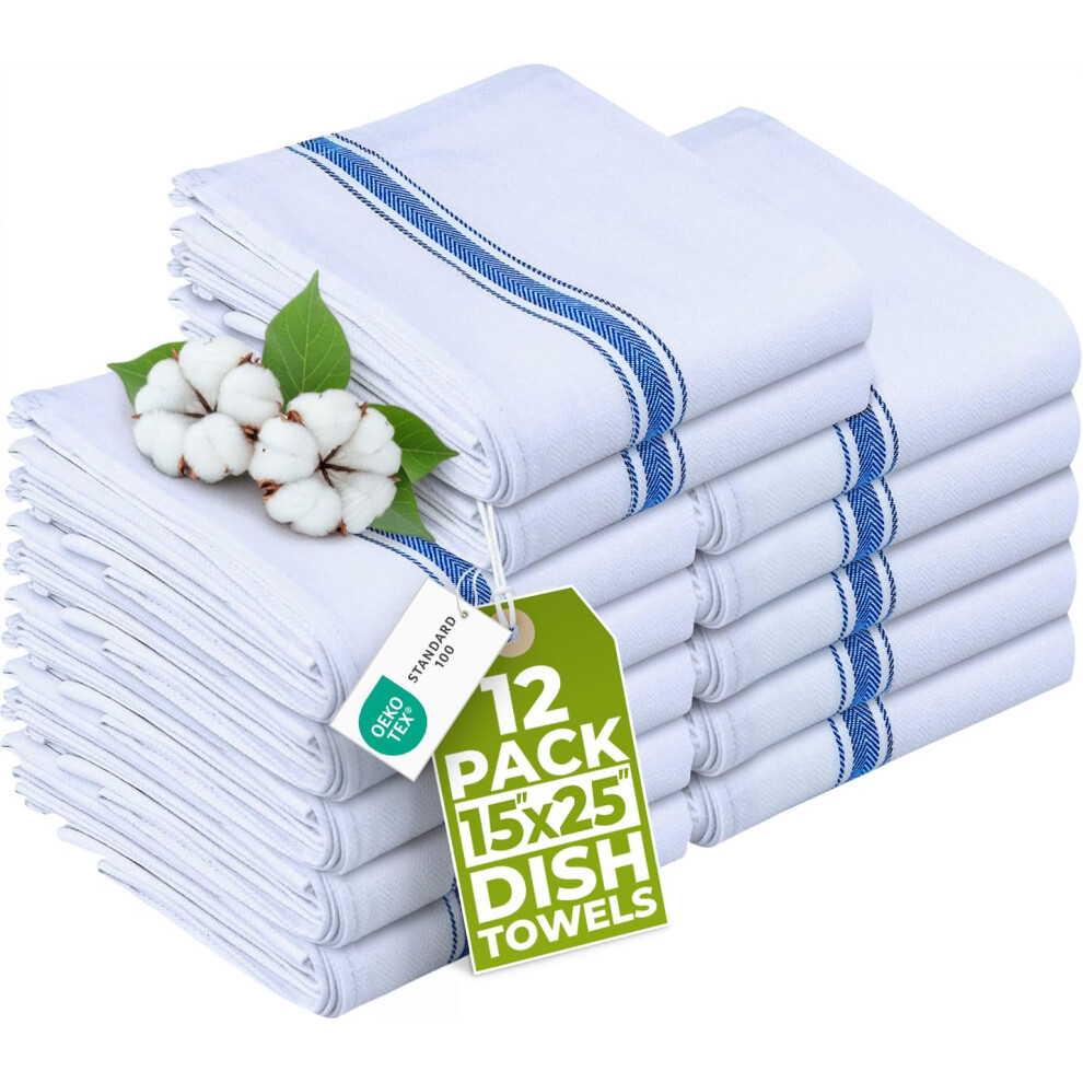 Zeppoli 15-Pack Kitchen Tea Towels – 100% Cotton Dish Cloth Set for Drying & Cleaning – Soft, Absorbent & Reusable – White with Black Stripes