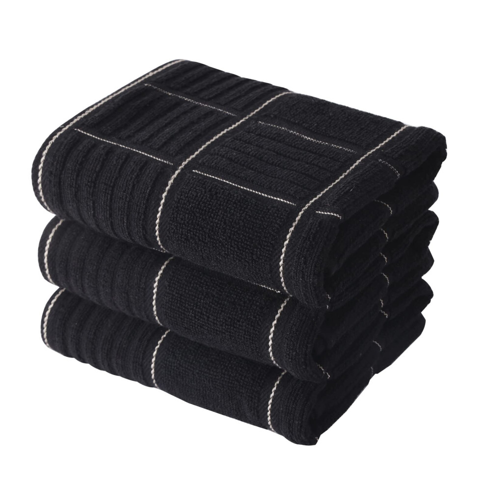 (Black) Kitchen Tea Towels Cooks Luxury Jacquard Woven Set of 3 Tea Towels Kitchen Washable Long-lasting