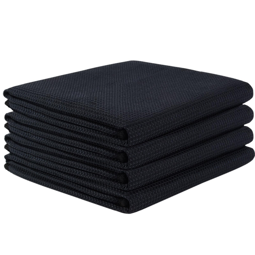 VIVOTE 4 Packs Black Tea Towels, Super Absorbent No lint Kitchen Towel, Machine Washable Microfibre Waffle Cloth, No Water Marks Tea Towels for