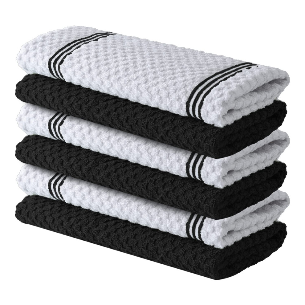 Set of 6 Terry Tea Towels 100% Cotton, Multicolour Absorbent Black Colour