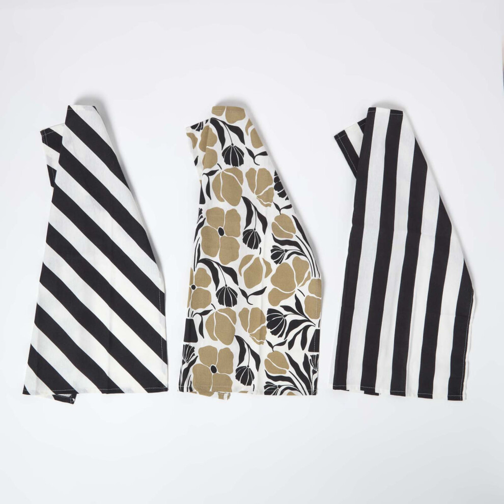Penguin Home Set of 3 100% Cotton Kitchen Towels, Eco Friendly Sustainable Tea Towels Stylish with Different Pattern, Size - 50x70 cm Colour - Black & White Dish Towels