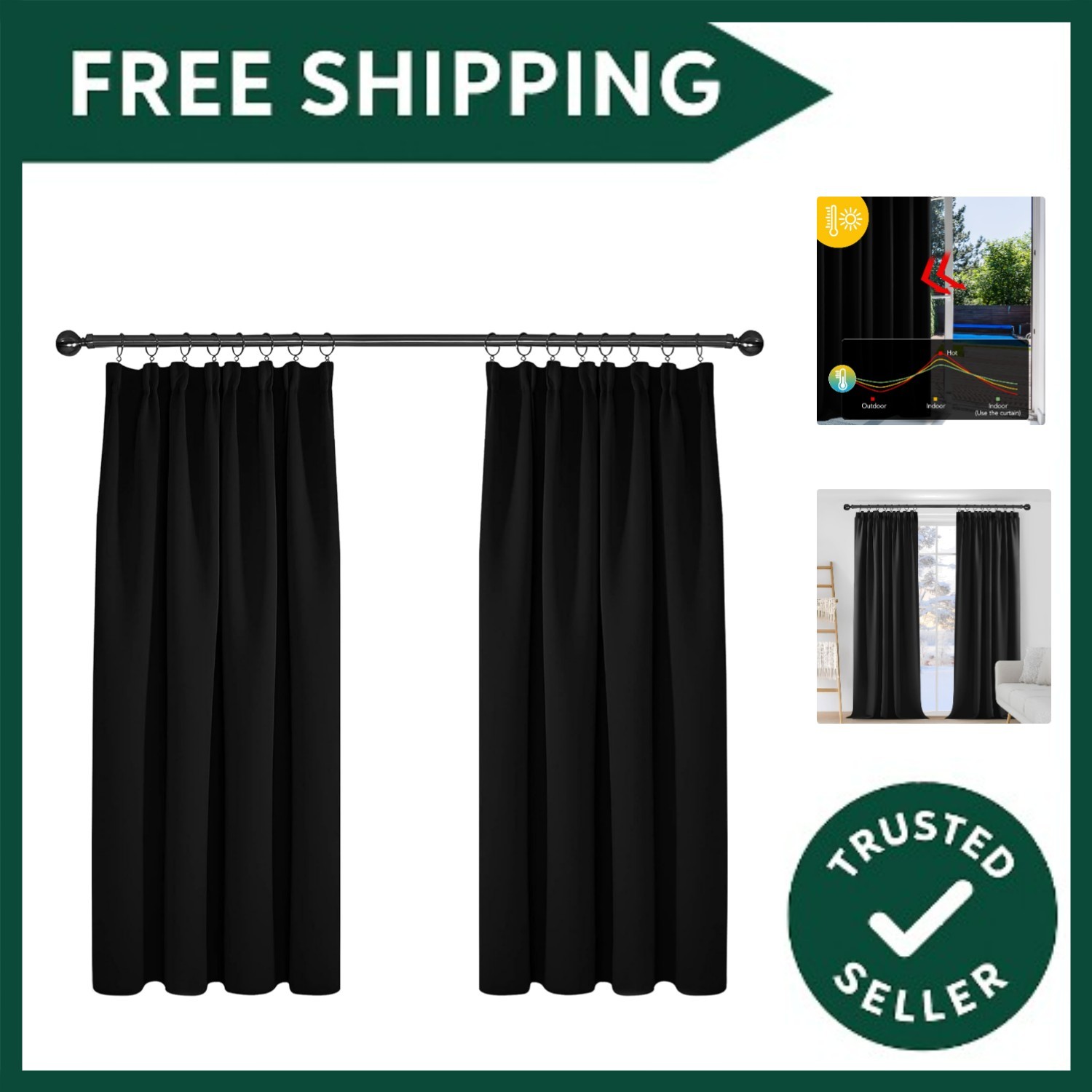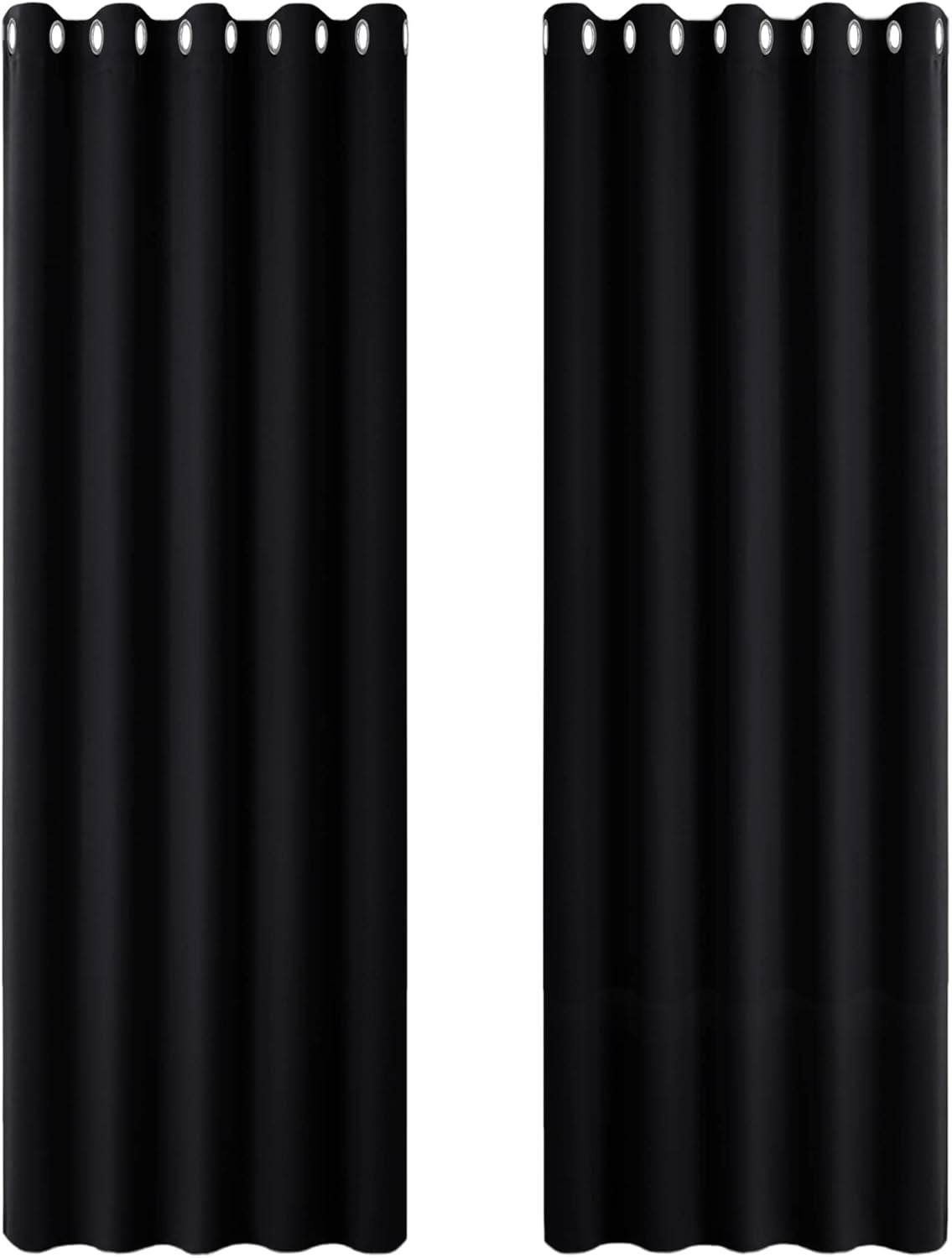 Black Thermal Blackout Curtains with Grommets, 2 Panels (70"x95", Black) â Compatible with Standard Rods