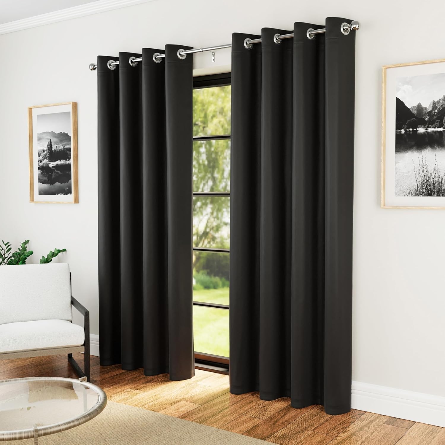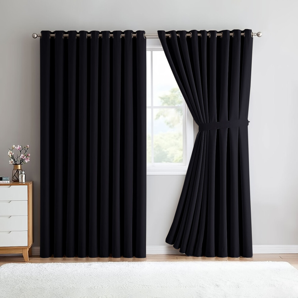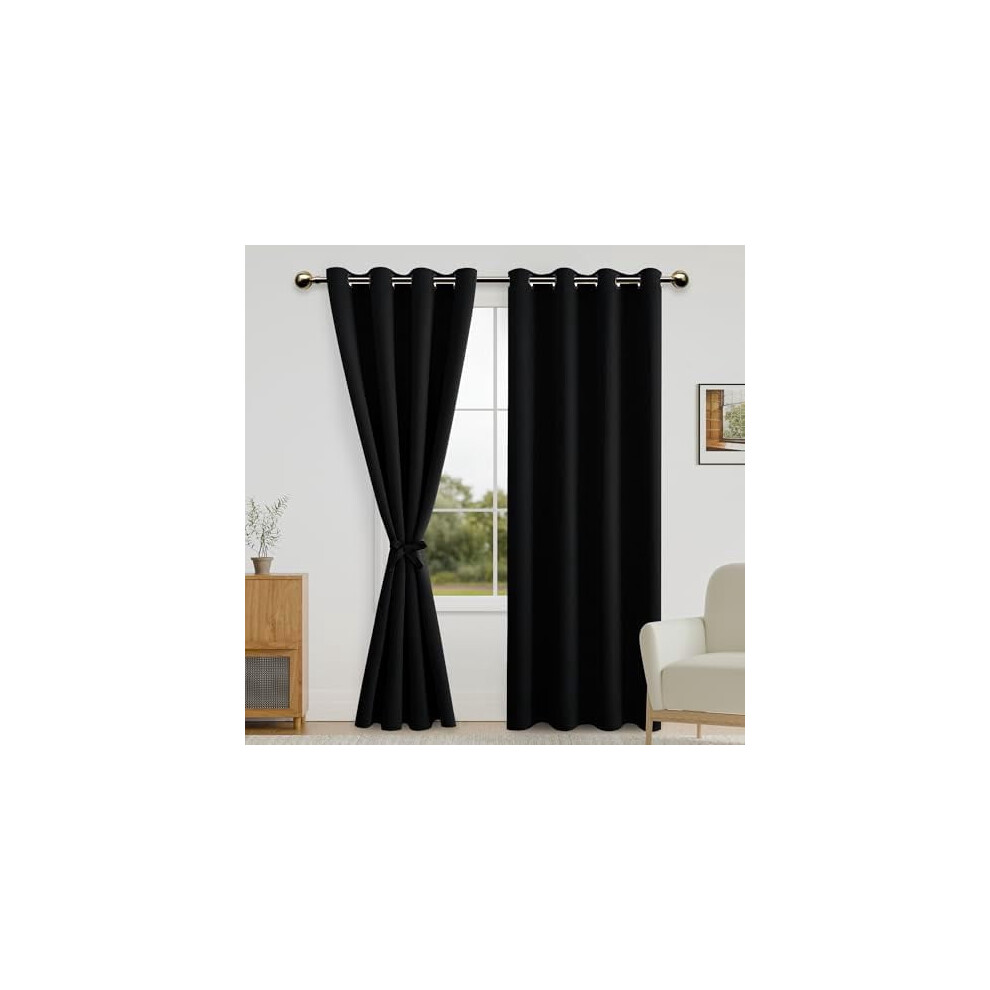 Black Thermal Blackout Curtains with Tiebacks, Grommet Top, 60x84", Set of 2 â Compatible with Standard Rods