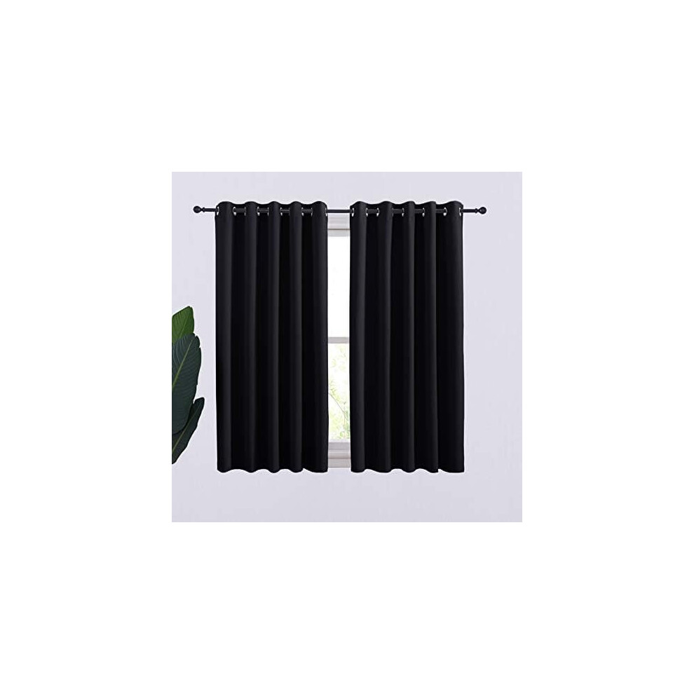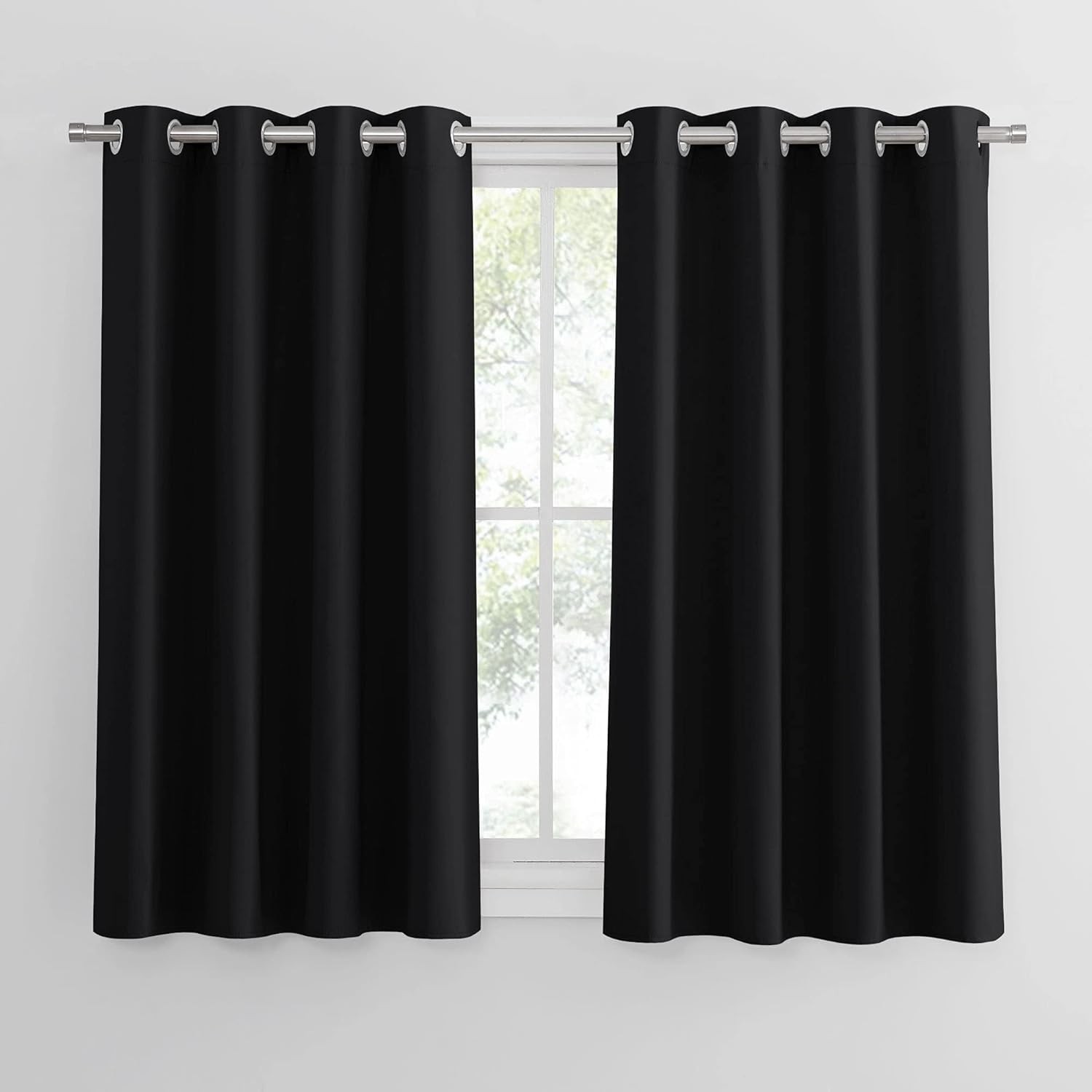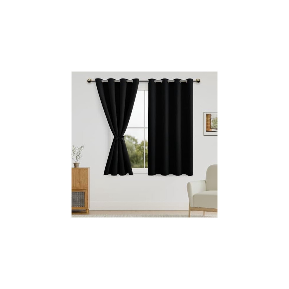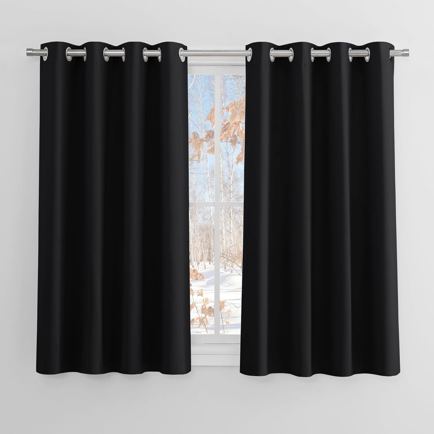 Black Thermal Blackout Short Curtains with Tiebacks, Grommet Top, Light Blocking, 52x45", Set of 2 â Compatible with Standard Rods