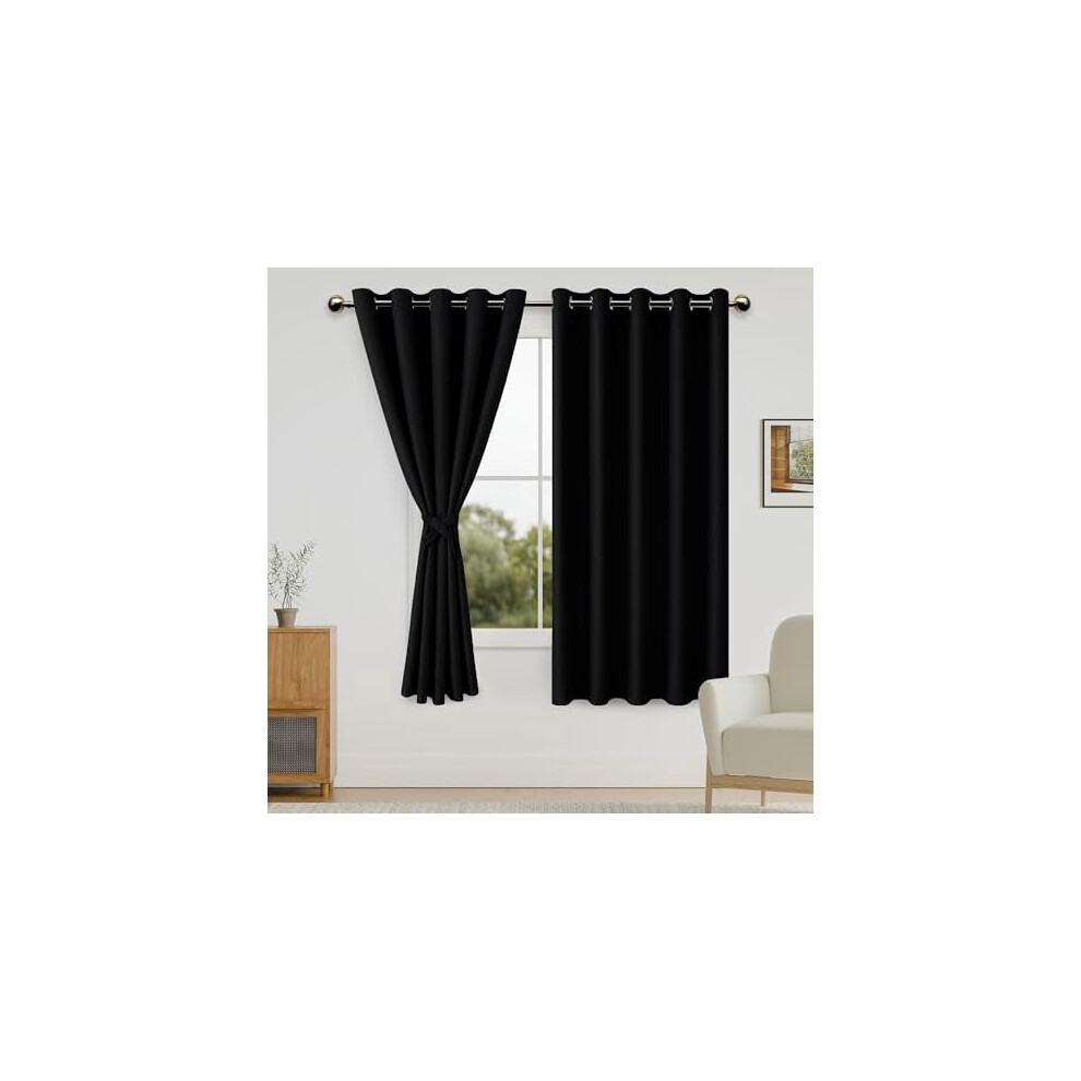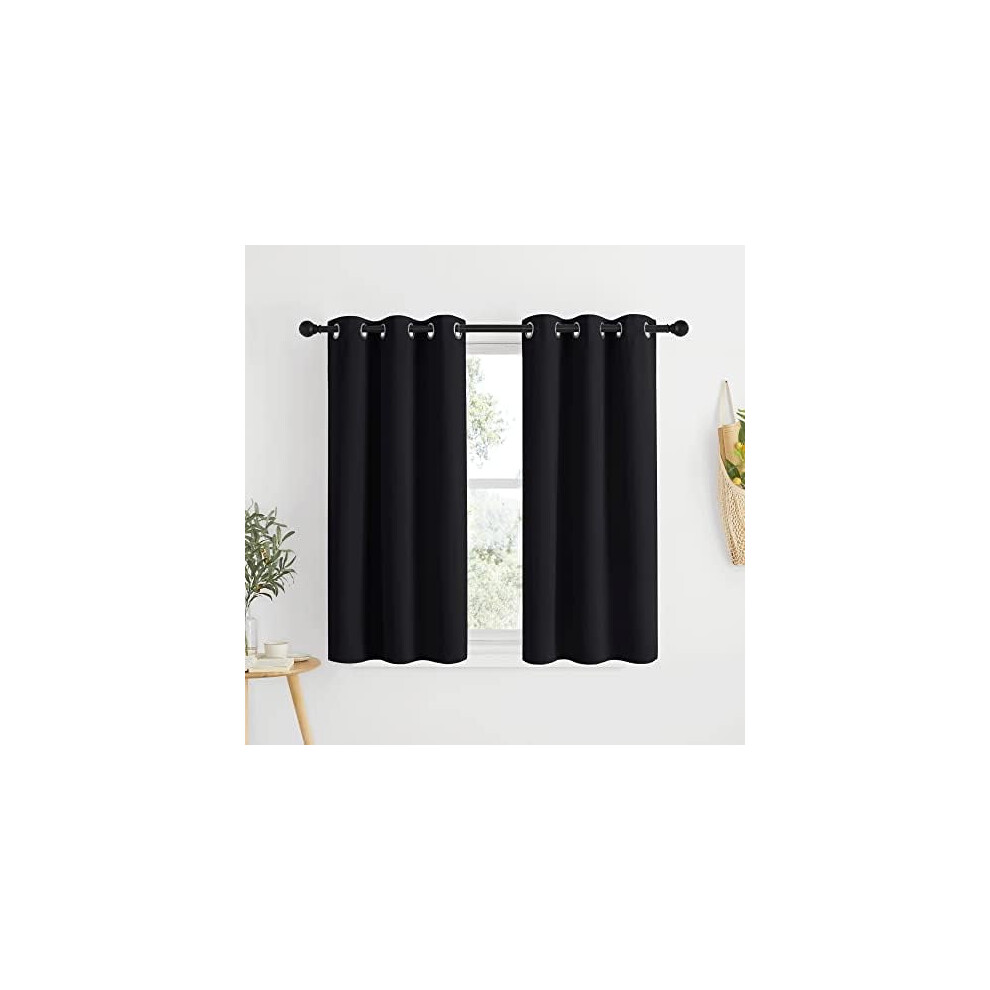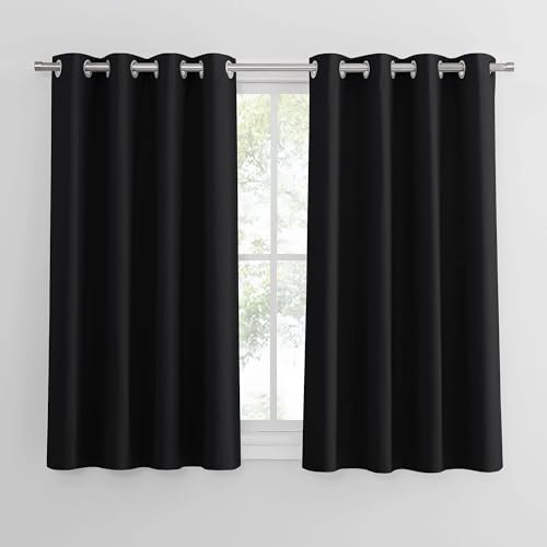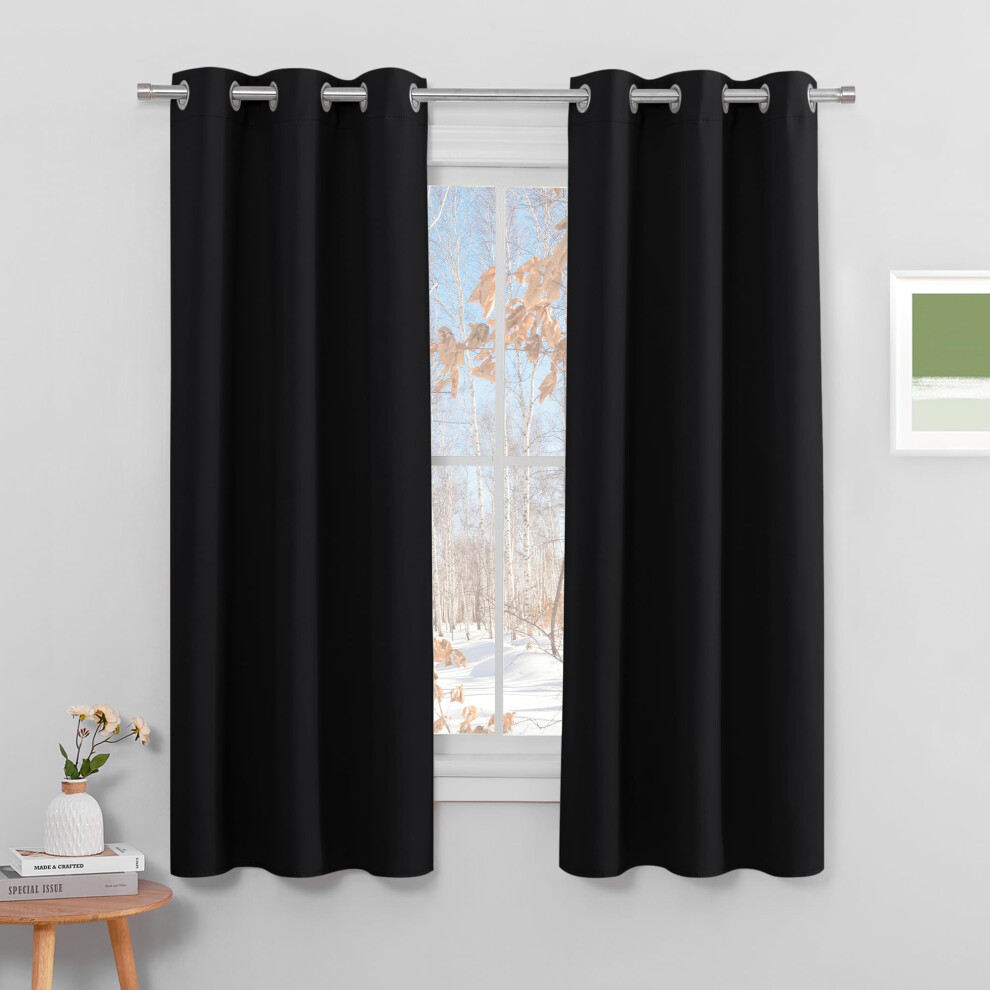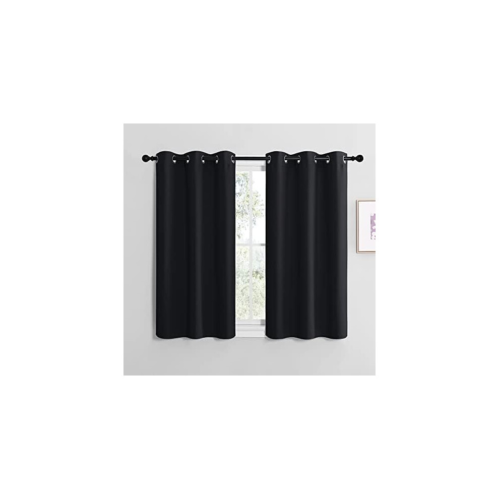 Black Thermal Blackout Short Curtains with Tiebacks, Grommet Top, Light Blocking, 52x45", Set of 2 â Compatible with Standard Rods