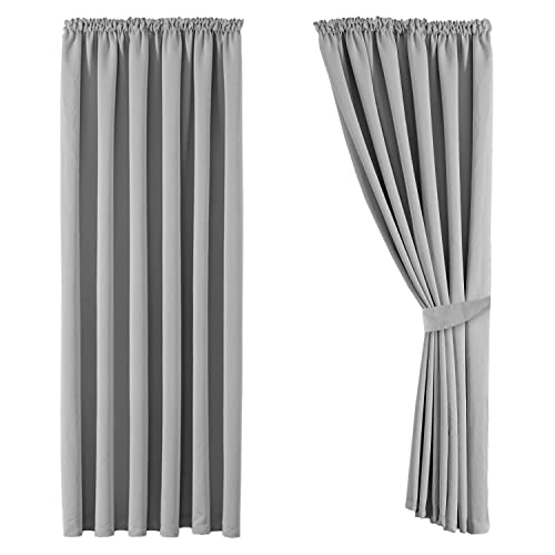 Aspire Homeware Blackout Curtains for Bedroom - Pencil Pleat Light Grey Black Out Curtains Thermal Insulated Window Treatments Super Soft Living Room Curtain with Tiebacks 90x72 Inch Drop 2 Panels