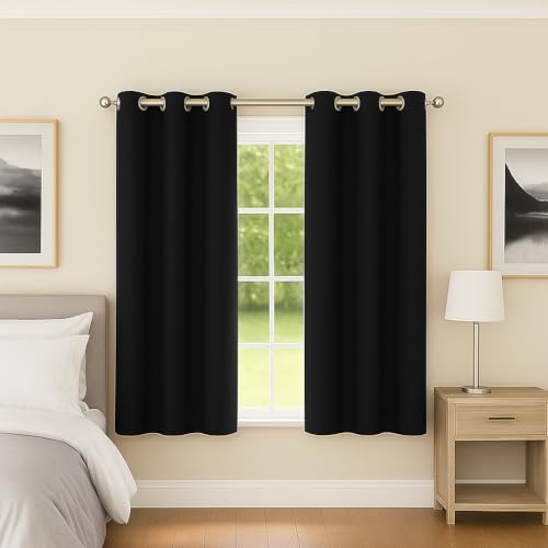 Black Thermal Blackout Curtains 48" L, Grommet Drapery Panels (2 pcs, 34" W) â Compatible with Standard Windows