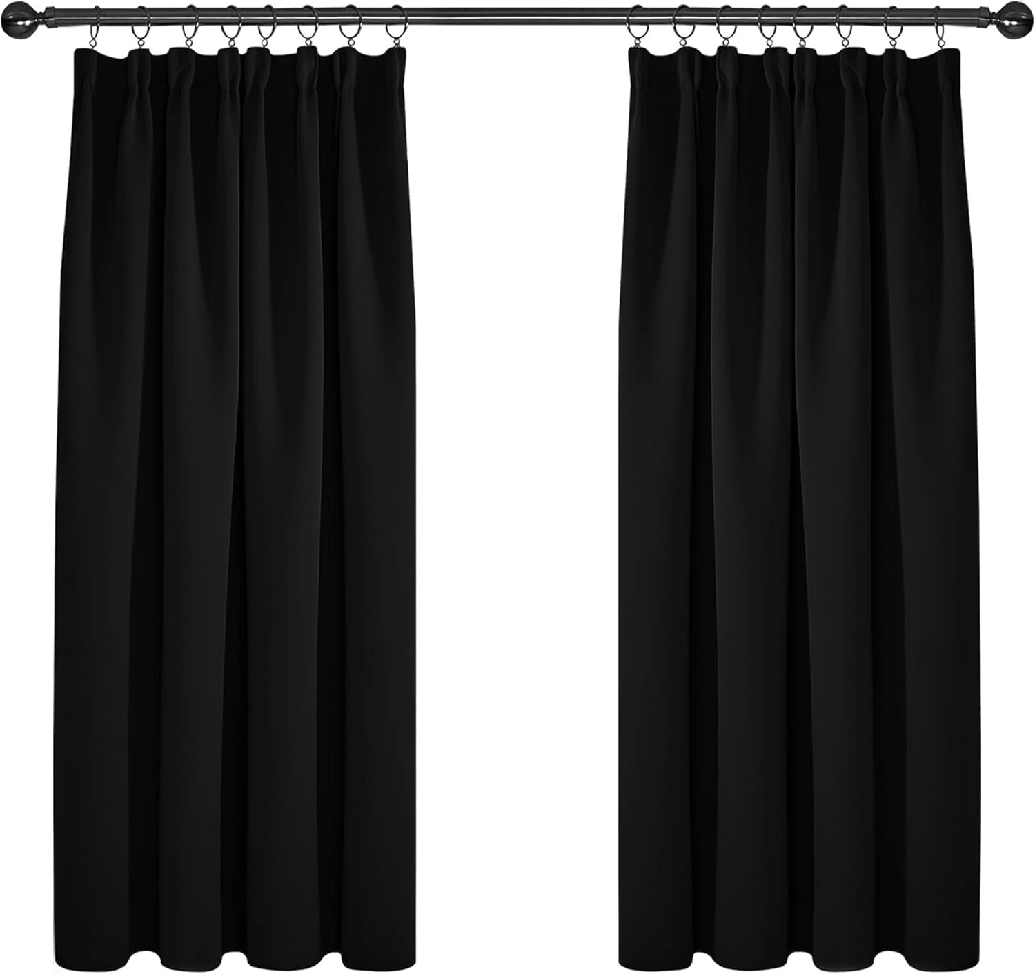 H.Versailtex Super Soft Blackout Pencil Pleat Black Curtains Thermal Insulated