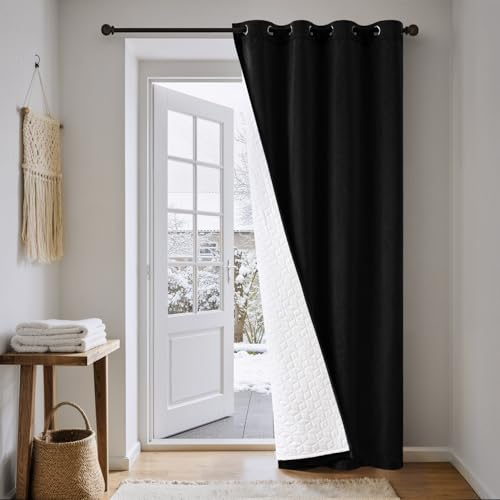 MIULEE Black Velvet Thermal Door Curtains for Winter Heavy Duty, Double-Layer Velvet Quilted Curtains Lined Curtain for Living Room Front Door Doorway,Blackout Thermal Insulated Draft Curtain Doors