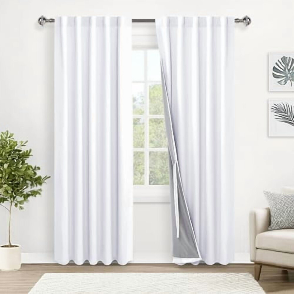White & Black Thermal Blackout Curtains with Tiebacks, Rod Pocket & Back Tab, 38x84", Set of 2, compatible with standard rods