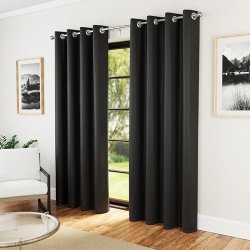 Utopia Bedding Blackout Curtains Grommet Thermal 2 Panels Drapes [Black, 52 x 63 Inches] Sound Insulated Curtain for Bedroom and Living Room