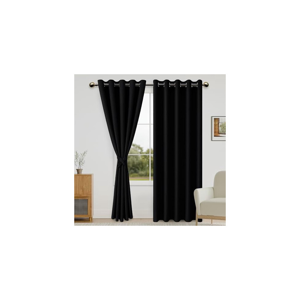 Black Thermal Blackout Curtains with Tiebacks, Grommet Top, 52x96", Set of 2 â Compatible with Standard Rods