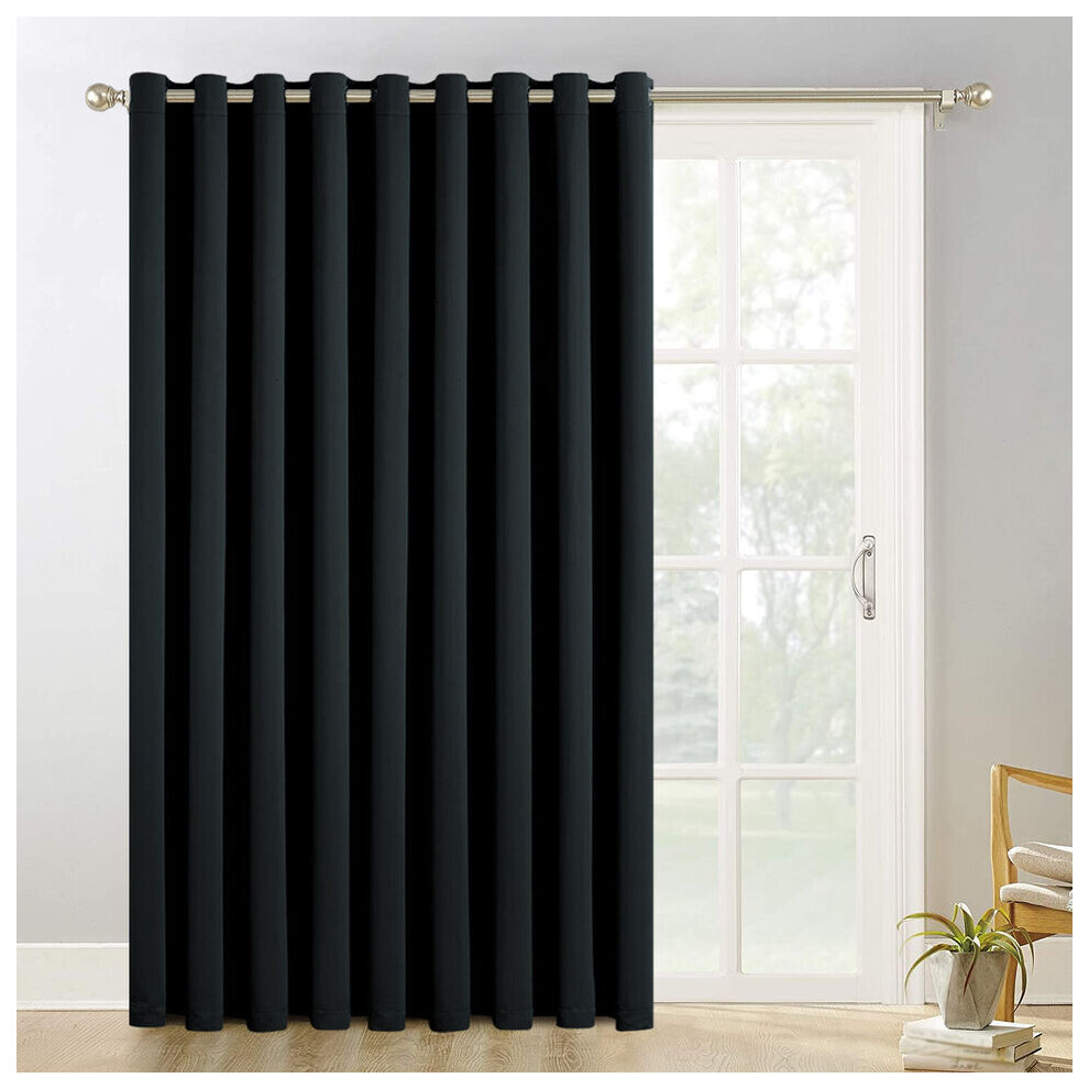 Black Blackout Curtains, Thermal Curtains 95 Inch Drop Slot Top Curtains, Singl
