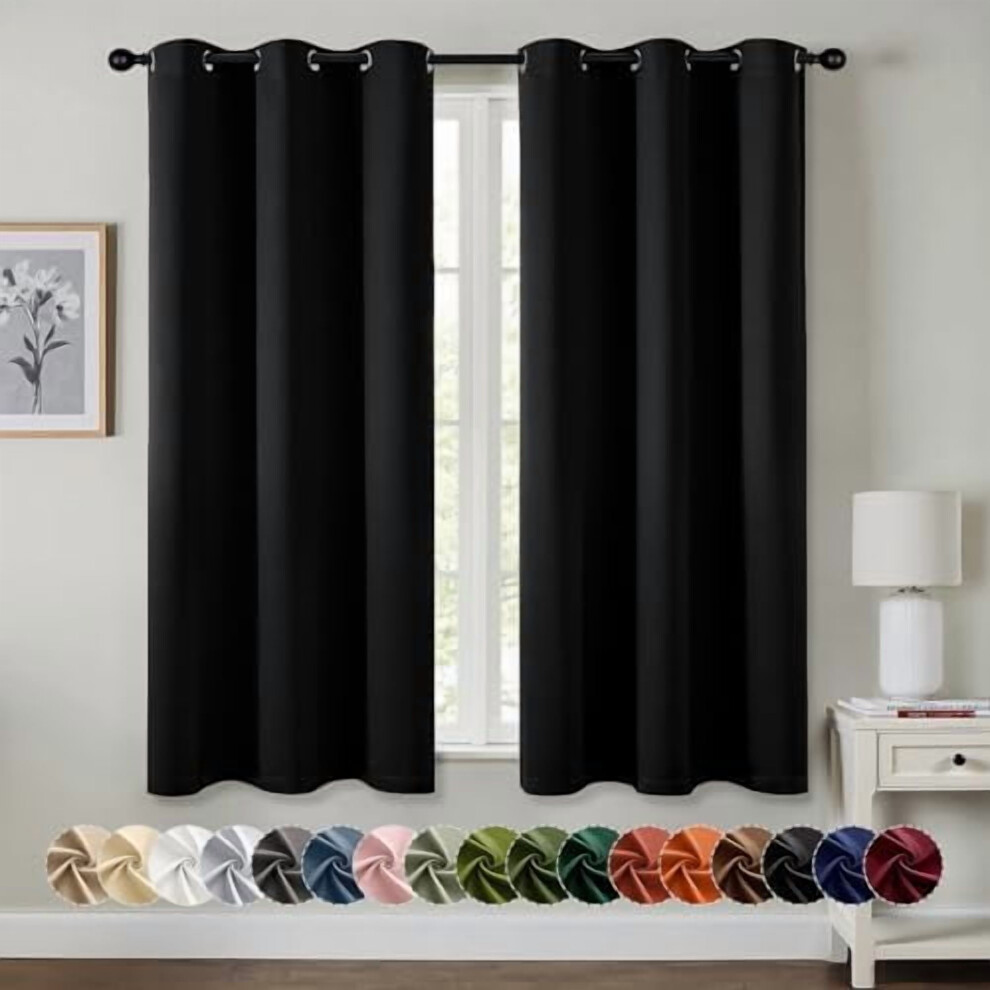 Black Blackout Curtains, Thermal Insulated, Light Blocking, Grommet Top, 40x50", 2 Panels â Compatible with Standard Rods
