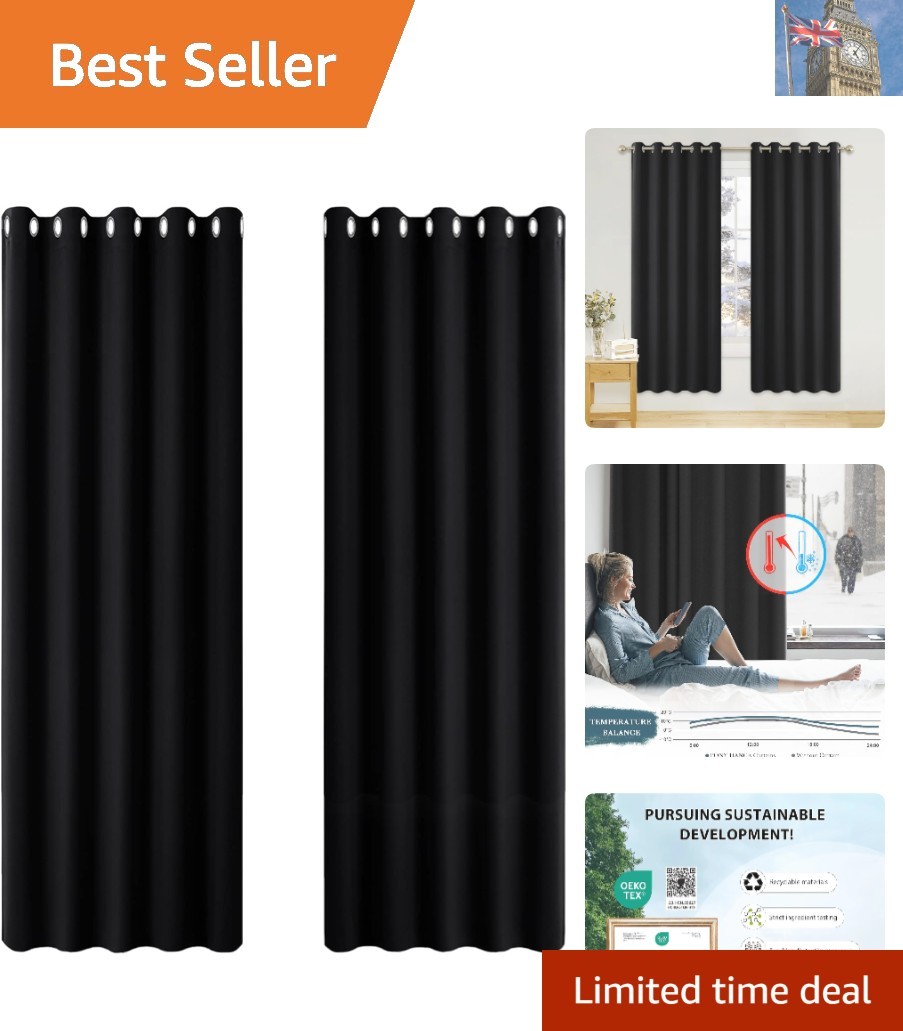 Versatile Black Thermal Curtains for Bedroom & Living Room - 66x72 Eyelet Pair