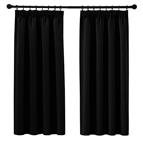 Deconovo Super Soft Black Out Curtains Thermal Insulated Pencil Pleat Blackout Curtains for Living Room 46 x 54 Black 2 Panels