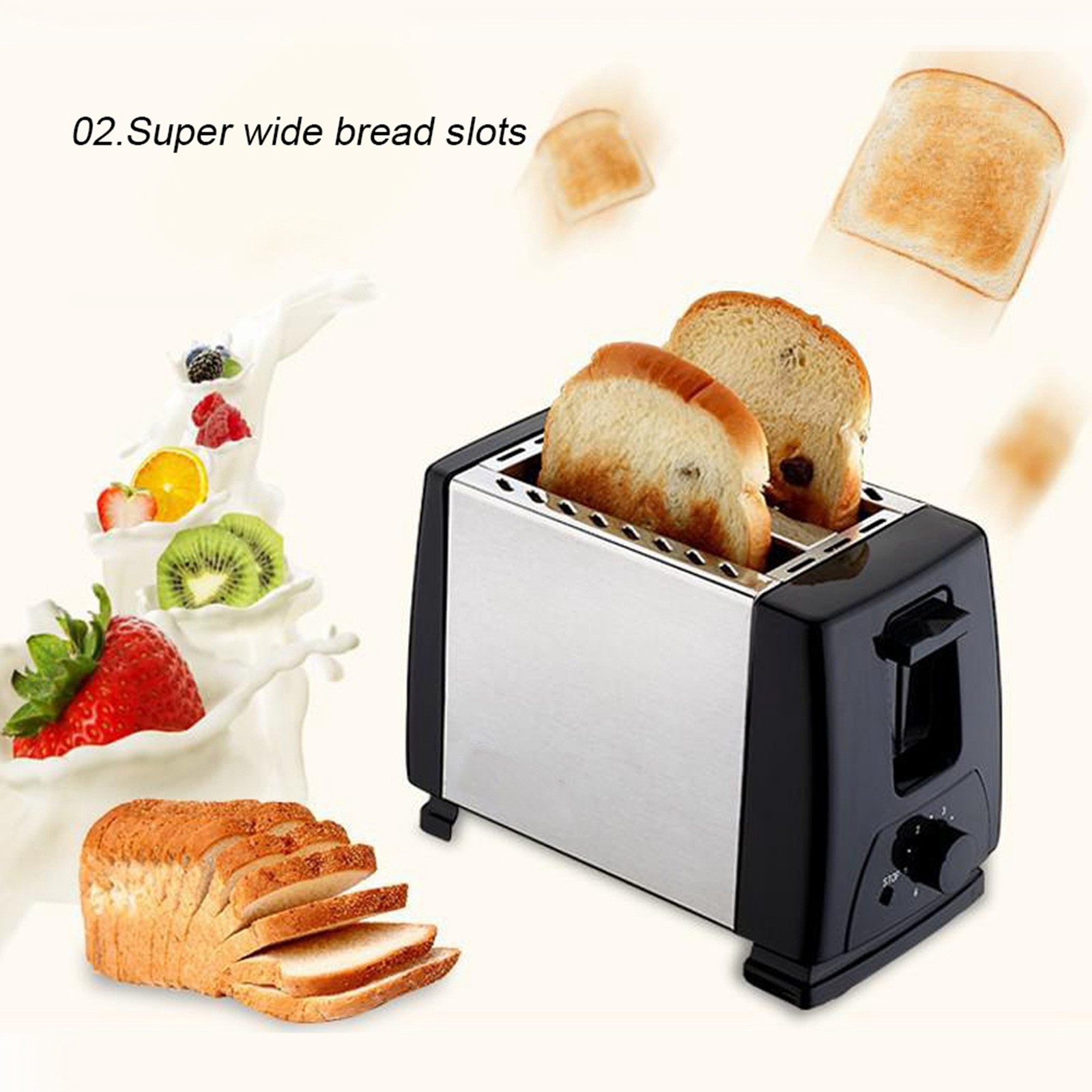 Black 650-850W 2 Slice Bread Toasters 6 Gears Breakfast Cooking Machine B SG
