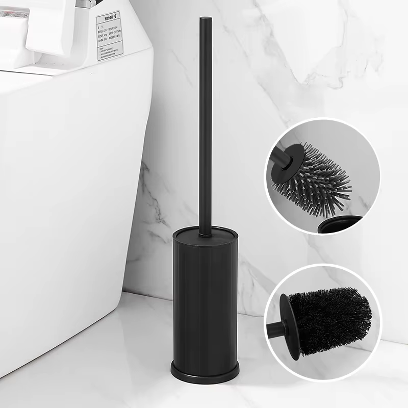 Grey/Black Bathroom Toilet Brush Aluminum Toilet Cleaning Brush Holder Home Floo
