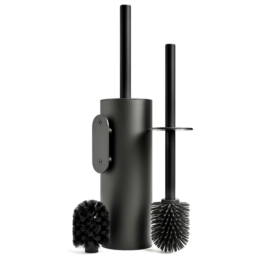 BVL Toilet Brush and Holder Black Toilet Bowl Brush for Ceaning with Stainless Steel Handle Wall Mounted