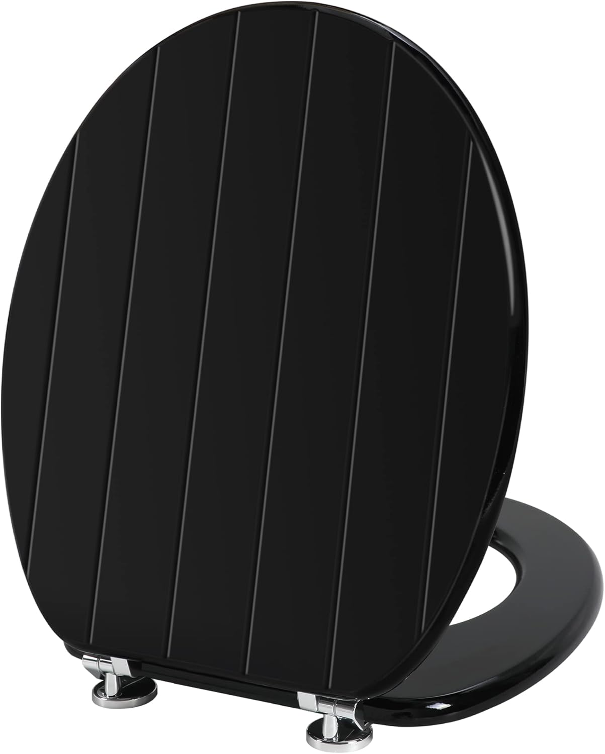 Black Toilet Seat MDF 18" Universal WC LOO Seat Chrome Hinges Oval Toilet Seat