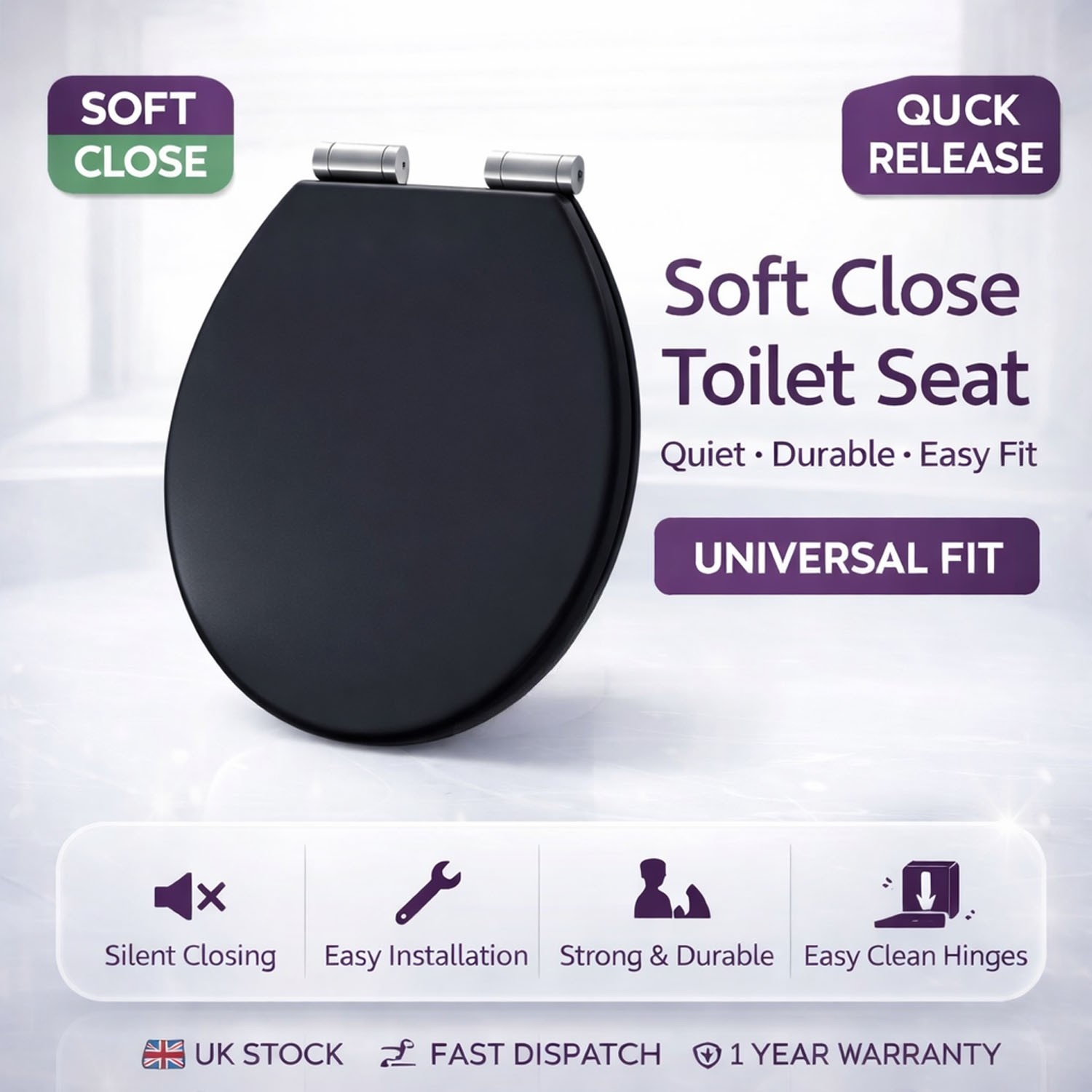 (Matt Black) Slow Close Toilet Seat Quick Release - Matt Finish