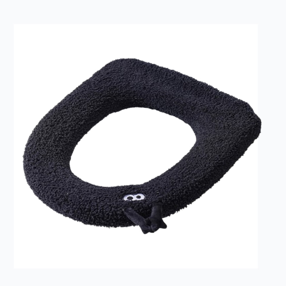 Black Black Household Plush Toilet Seat Cushion With Handle For Winter Season Warm Washable Bathroom Mat Thickened Comfort Seat Cover