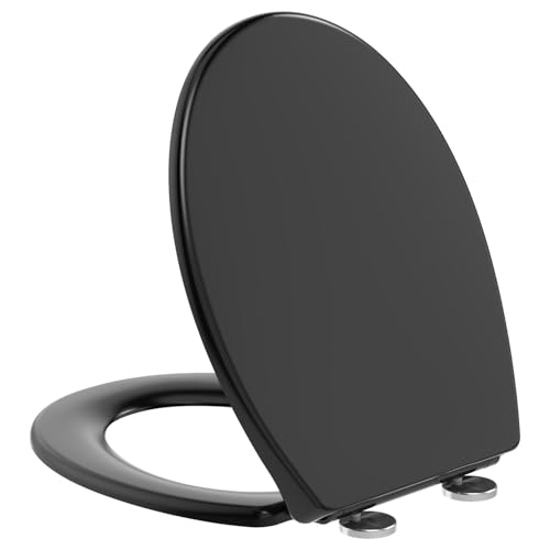 Ram? Black Soft Close Toilet Seat with Adjustable Hinges LOO Toilet Seat Quick Release Easy Clean Bathroom Toilet Seat Black