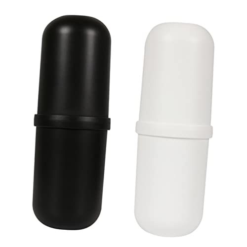 Ipetboom 2pcs Portable Toothbrush Cup Black Bathroom Toothbrush Holder Storage Case Toothpaste Holder Grey