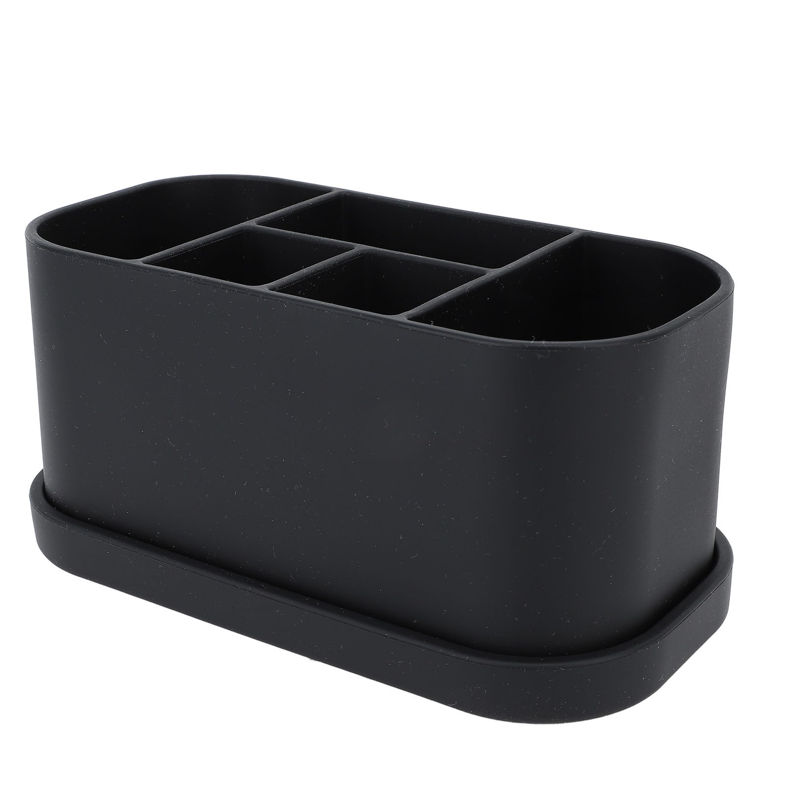 (Black)Silicone Toothbrush Toothpaste Holder Multipurpose 5 Slots Drainage Ho