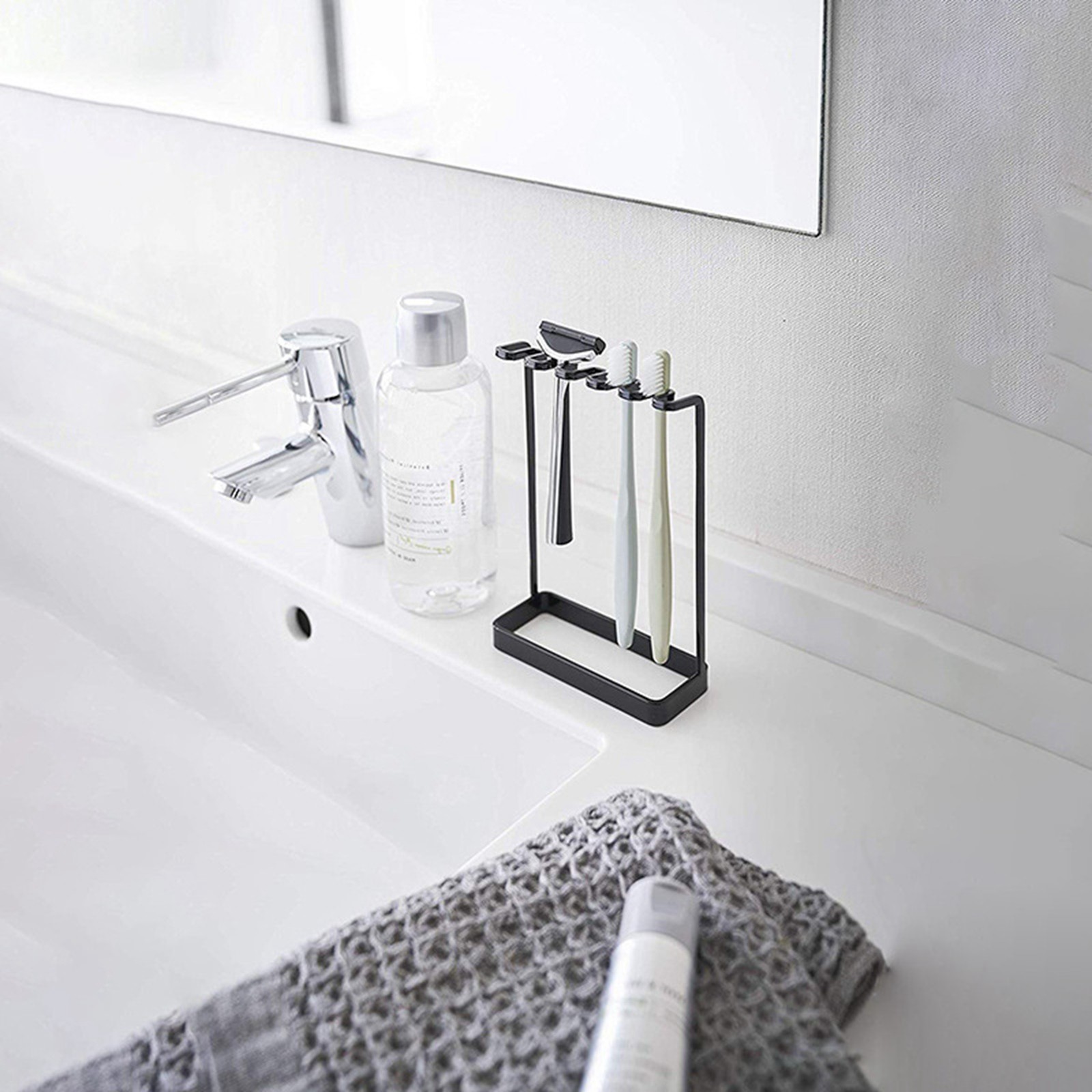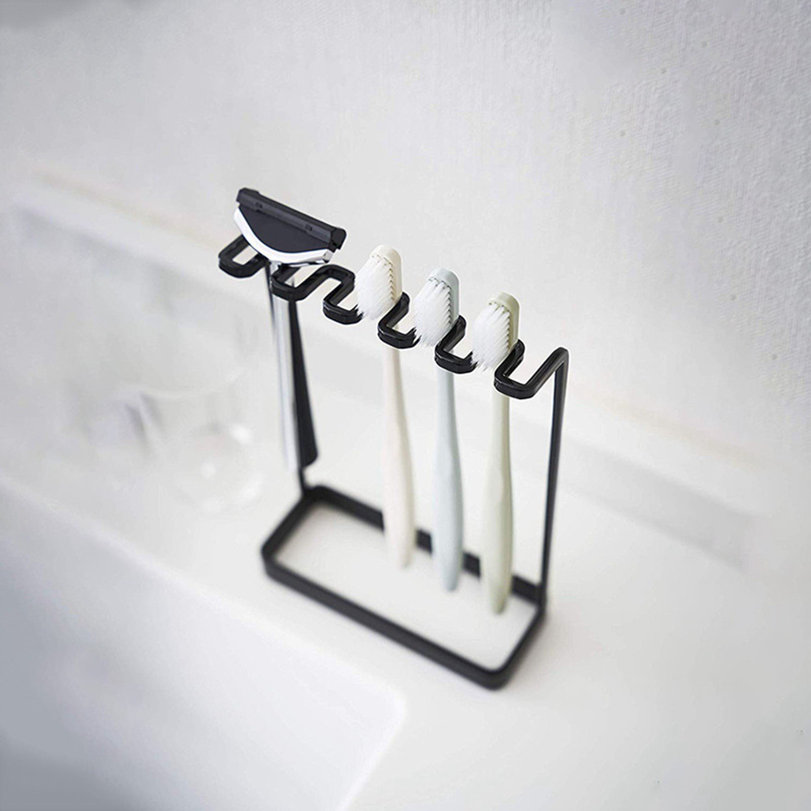 Black Toothbrush Holder Iron Waterproof Rust Protection Curved Toothbrush R OU