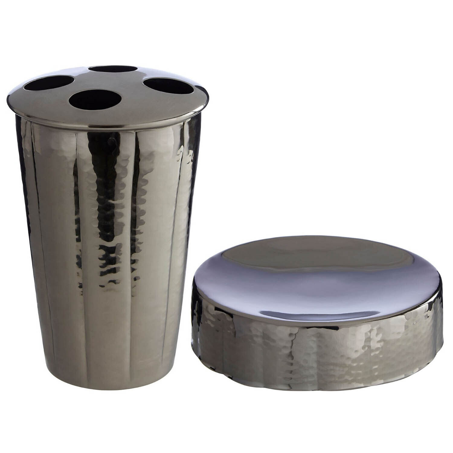 Premier Housewares Hammered Effect Black Nickel Finish Toothbrush Holder, Silver, 13 x 9 x 9 cm