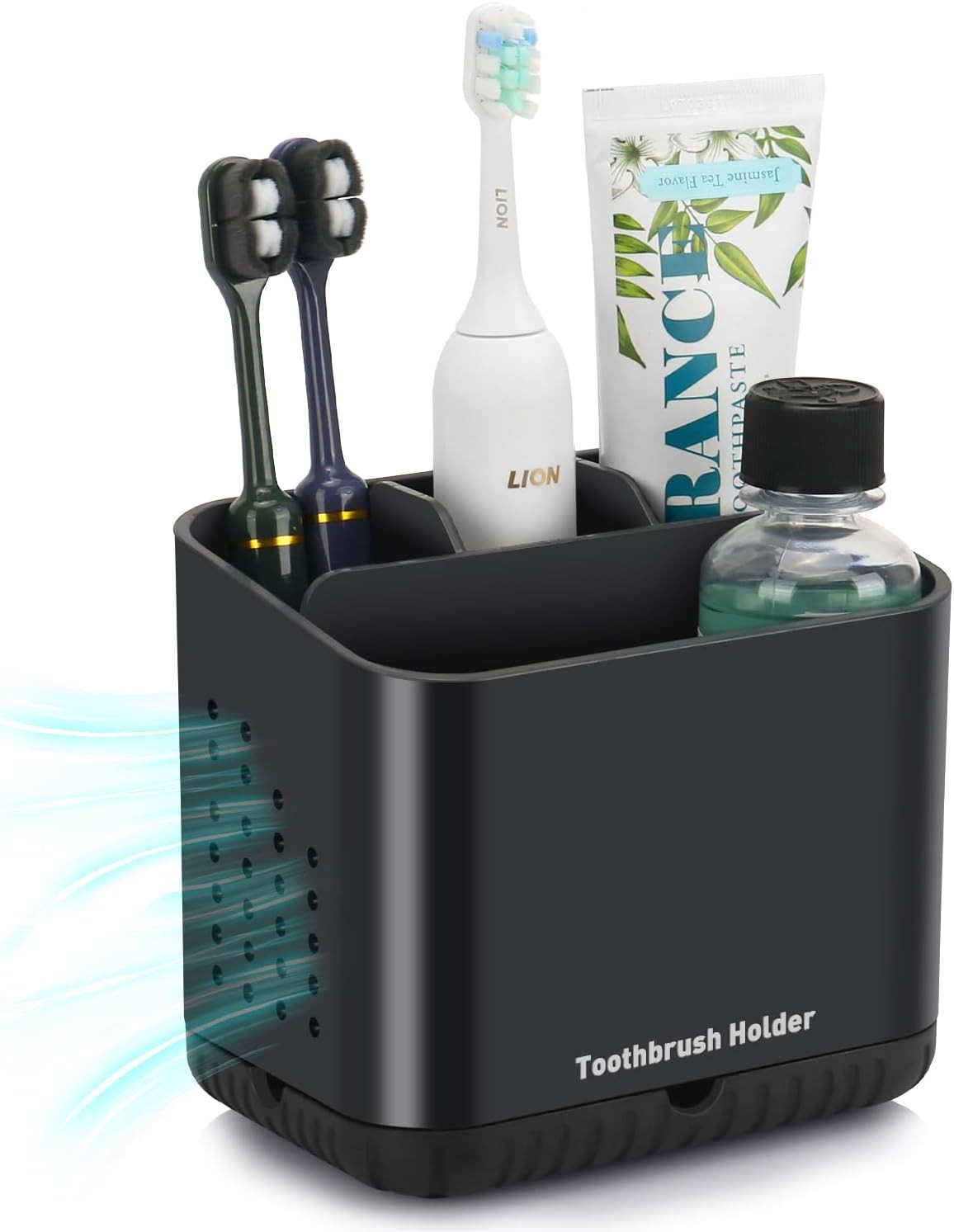toprance Black Toothbrush Holder Easy to Clean Electric Toothbrush Holder with Drainage, Freestanding Toothbrush Caddy for Family, Detachable Toothbrush Holders for Bathroom Organiser Storage