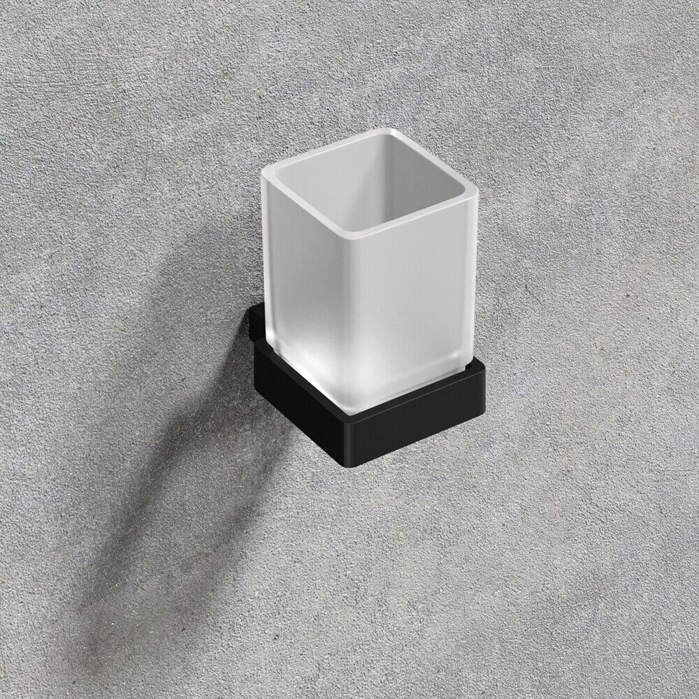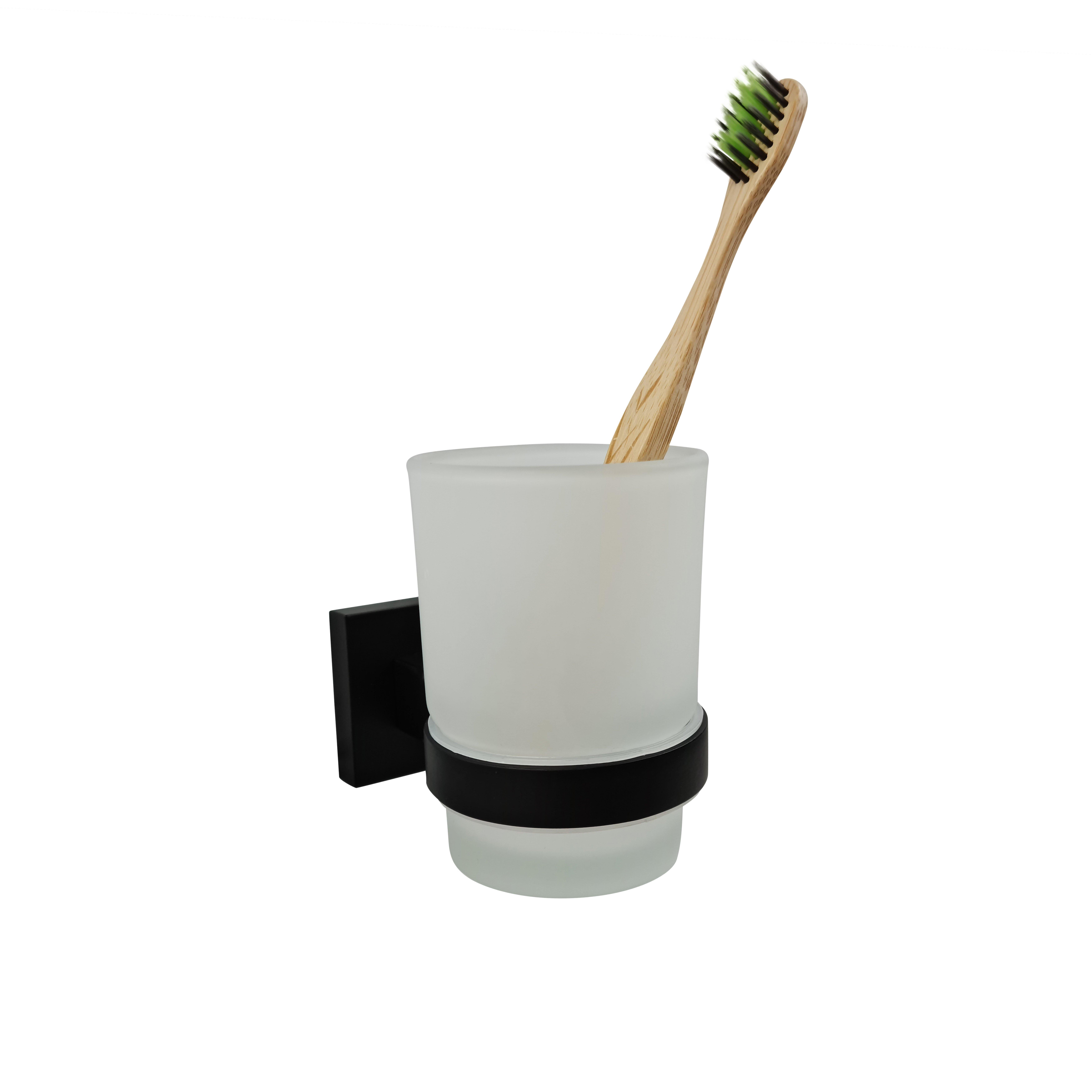 Black Toothbrush Holder with Glass Cup Wall Mounted Bathroom Accessory