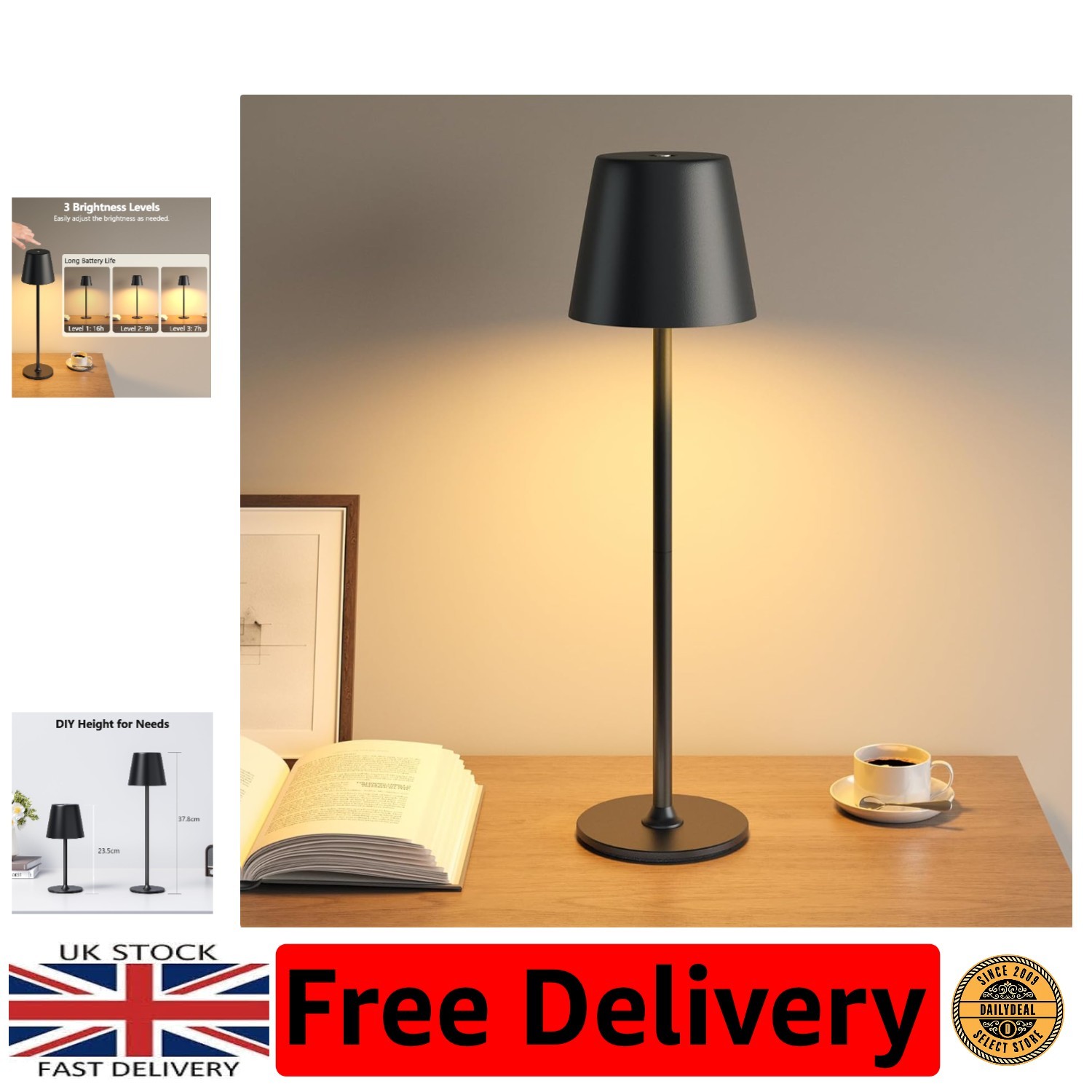 L & P Home & Gifts Lesser & Pavey Black Rechargeable Touch Lamp | Gift for Women & Men | Bedside Nightstand Table Lamp | Battery Powered Touch Control Night Lights