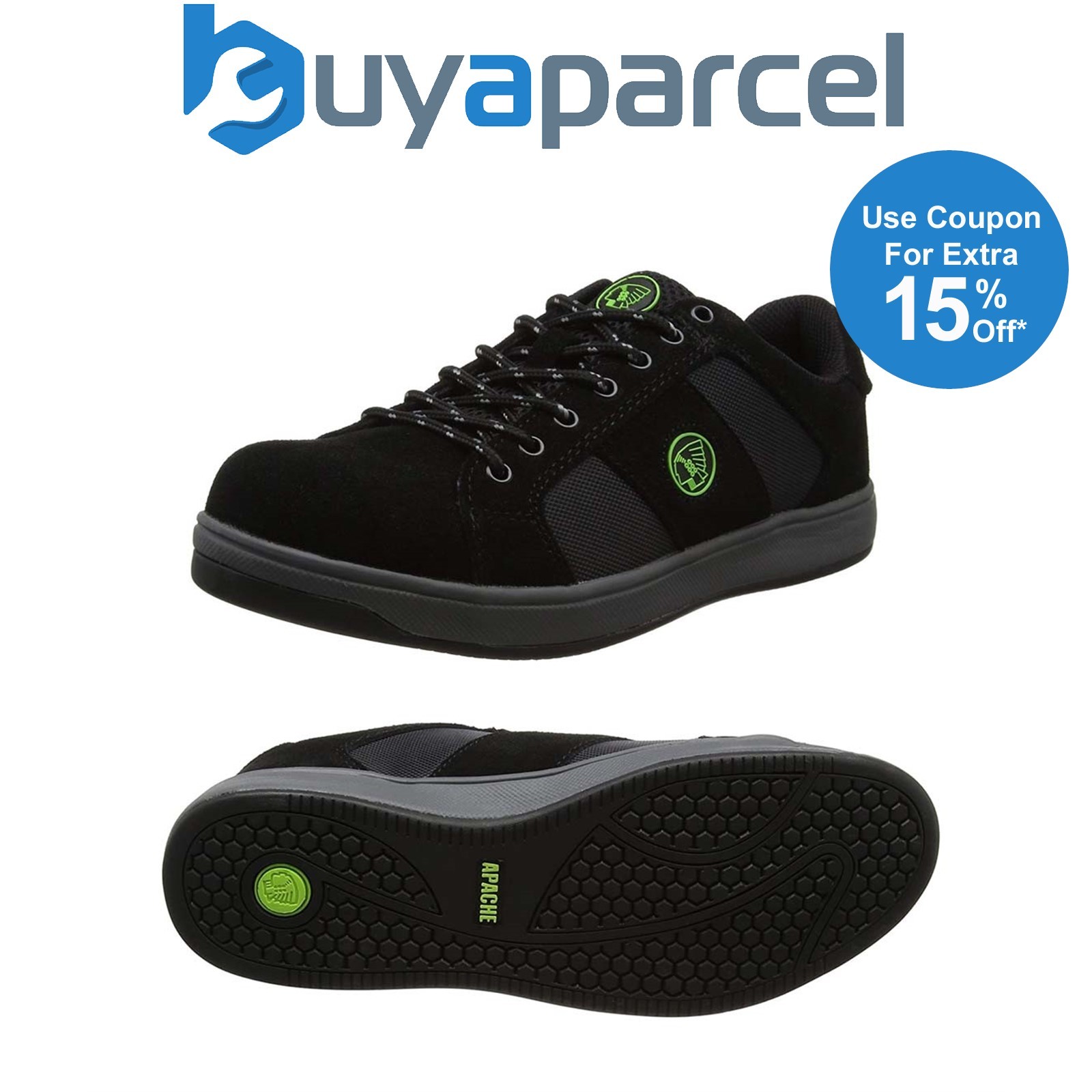 Apache Kick Black Safety Trainers Work Shoe 200J Steel Toecap SP1 SRA UK Size 6