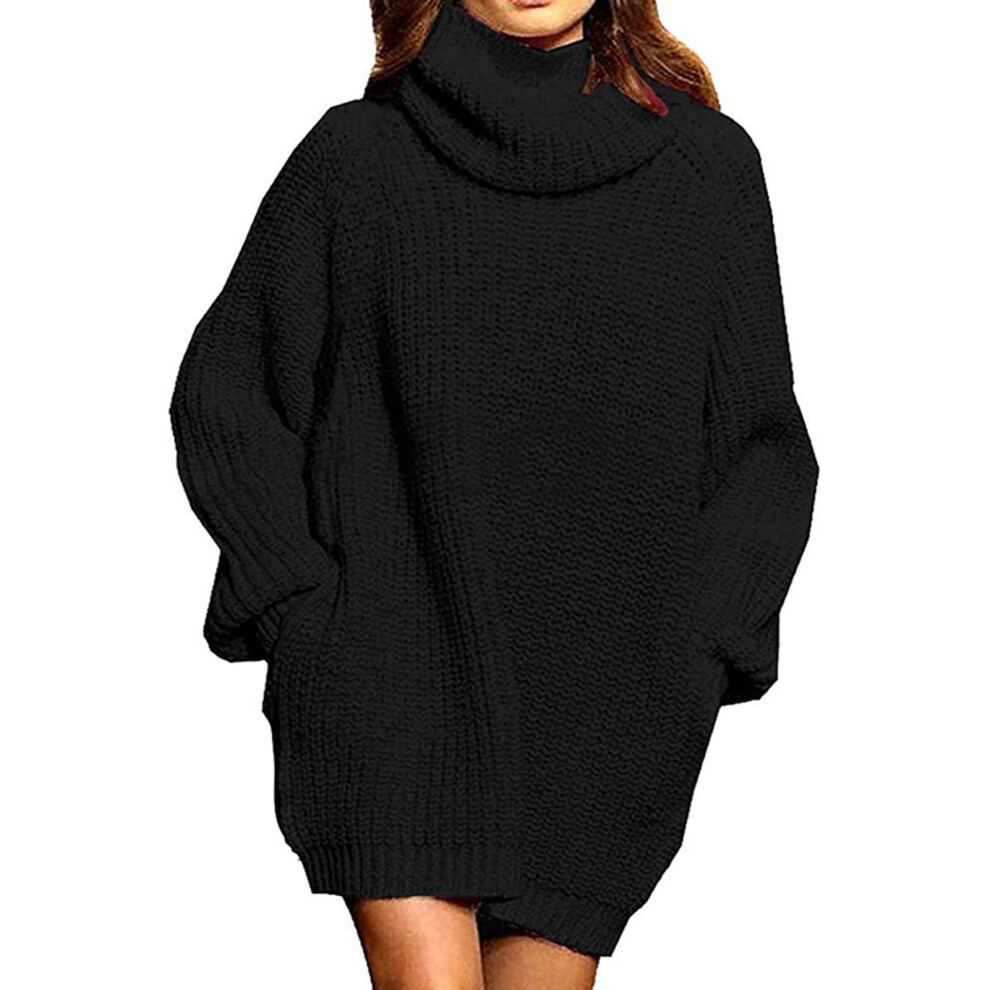 (Black XL) Turtleneck Sweater Dress Black Knee Length Long Sleeve L