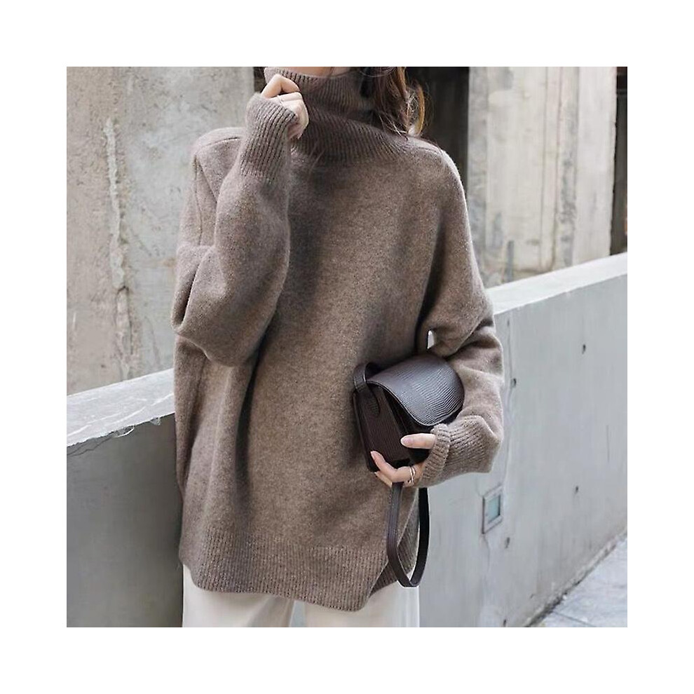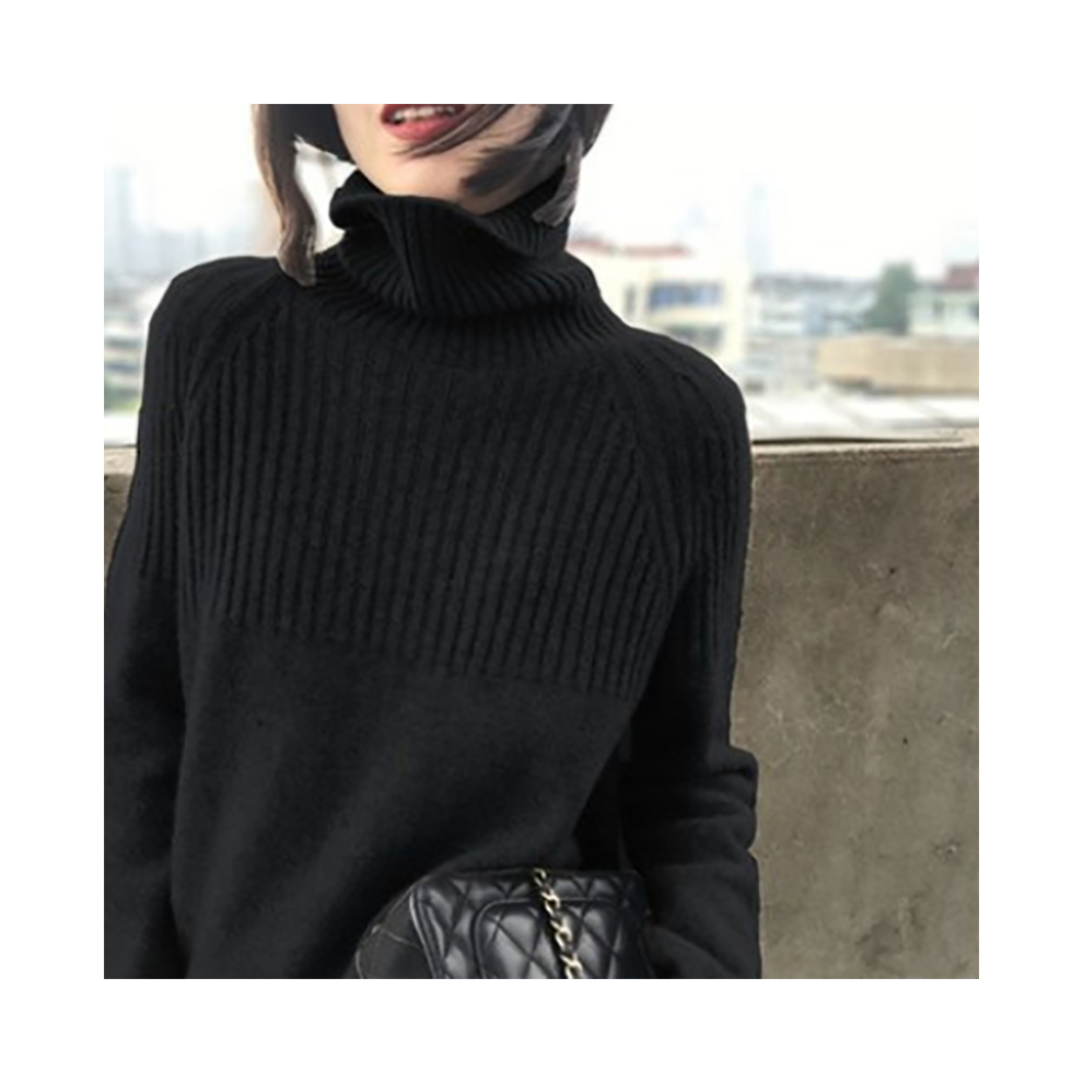 (Black) Elegant Turtleneck Cashmere Sweater Women Autumn Winter Warm Soft Knitted Pullovers Korean Solid Oversized Sweaters Basic Jumper