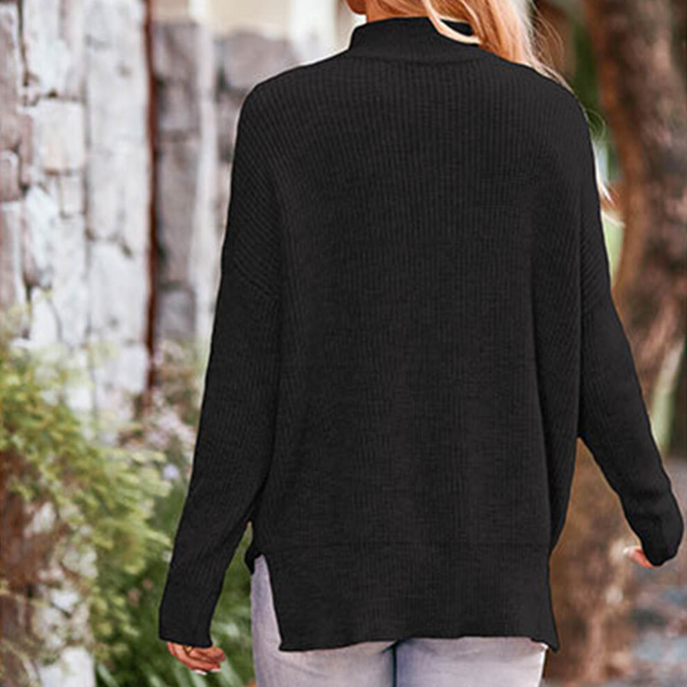 Women's Black Turtleneck Sweater Loose Long Sleeve Casual Fall Winter Fits XL