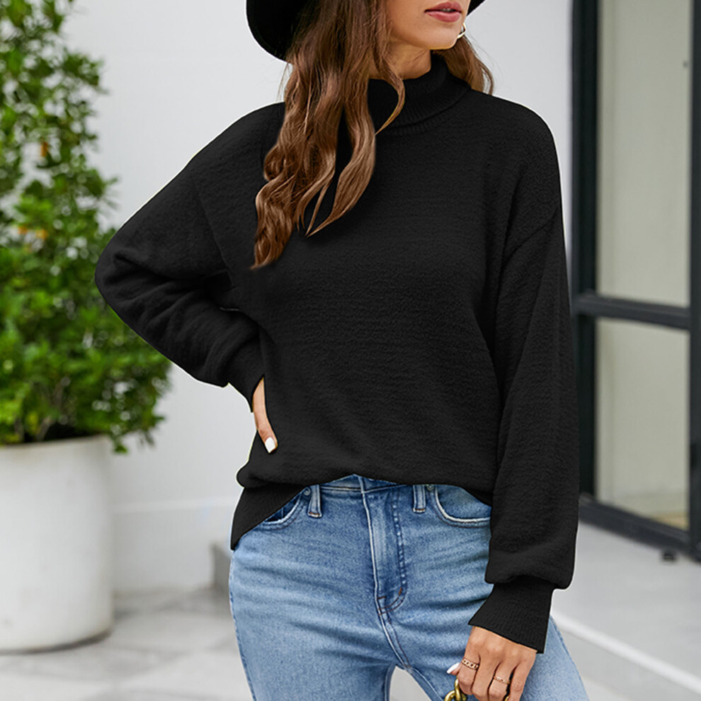 (Black, L) Turtleneck Women Sweater Knitting Pullovers Solid Warm Casual Female Sweater